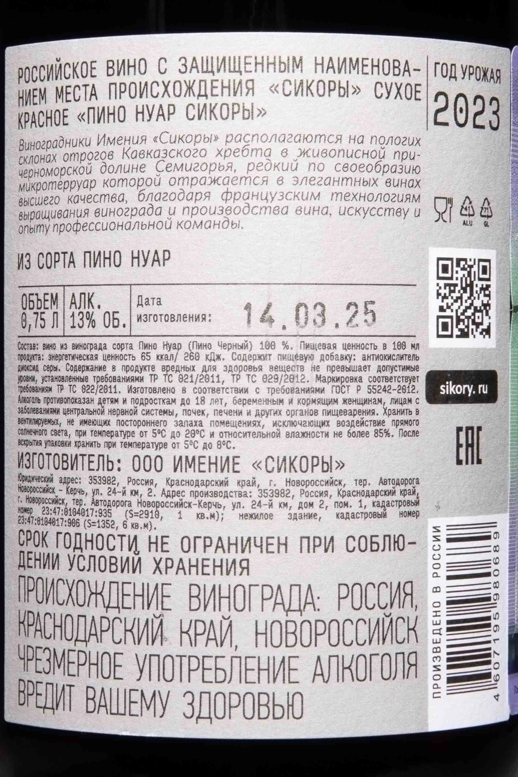 Сикоры Пино Нуар 2023 0.75 л купить - Российское вино Sikory Pinot Noir цена в магазине КРЮ ПРОФИ г. Москва, ул. Профсоюзная, д. 16/10 10:00-22:00 Ежедневно +7 (495) 920-20-02 info@cru.ru