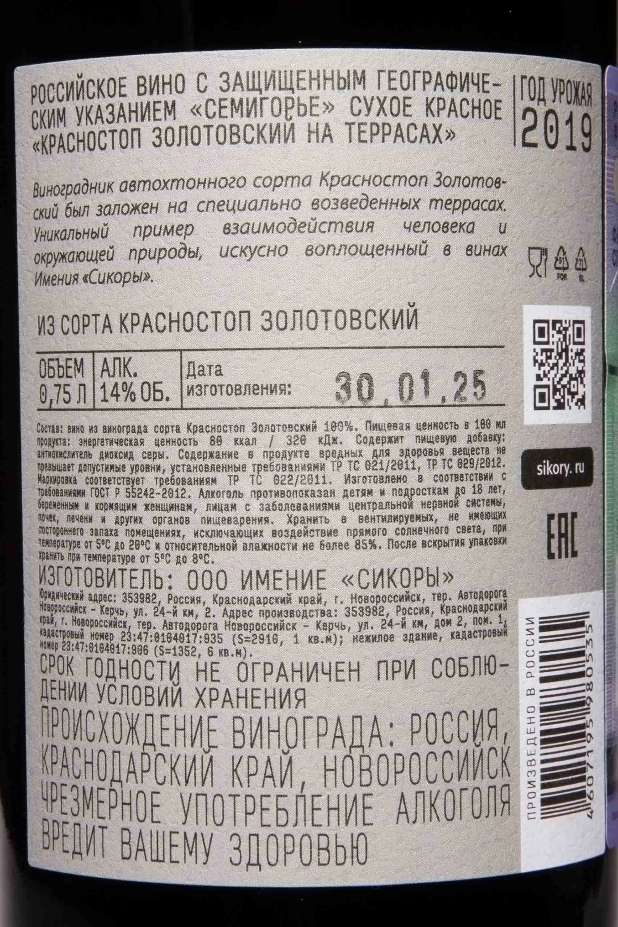 Вино Сикоры Красностоп на Террасах 2018 0.75 л
