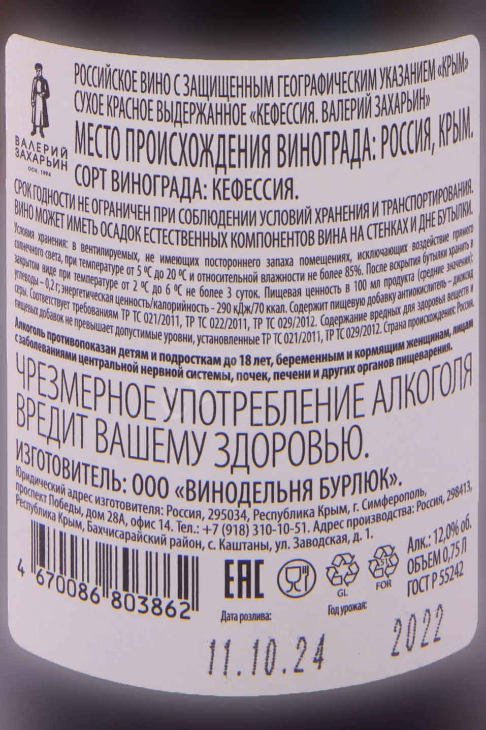 Валерий Захарьин Кефессия 2022 0.75 л купить - Российское вино Valery Zaharin Kefesiya цена в магазине КРЮ ПРОФИ г. Москва, ул. Профсоюзная, д. 16/10 10:00-22:00 Ежедневно +7 (495) 920-20-02 info@cru.ru