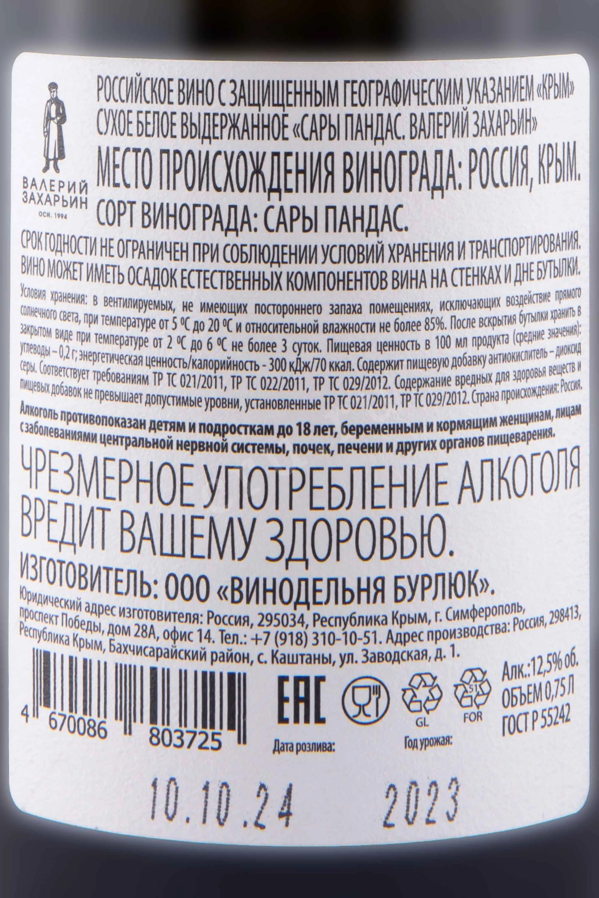Валерий Захарьин Сары Пандас 2023 0.75 л купить - Российское вино Valery Zaharin Sary Pandas цена в магазине КРЮ ПРОФИ г. Москва, ул. Профсоюзная, д. 16/10 10:00-22:00 Ежедневно +7 (495) 920-20-02 info@cru.ru