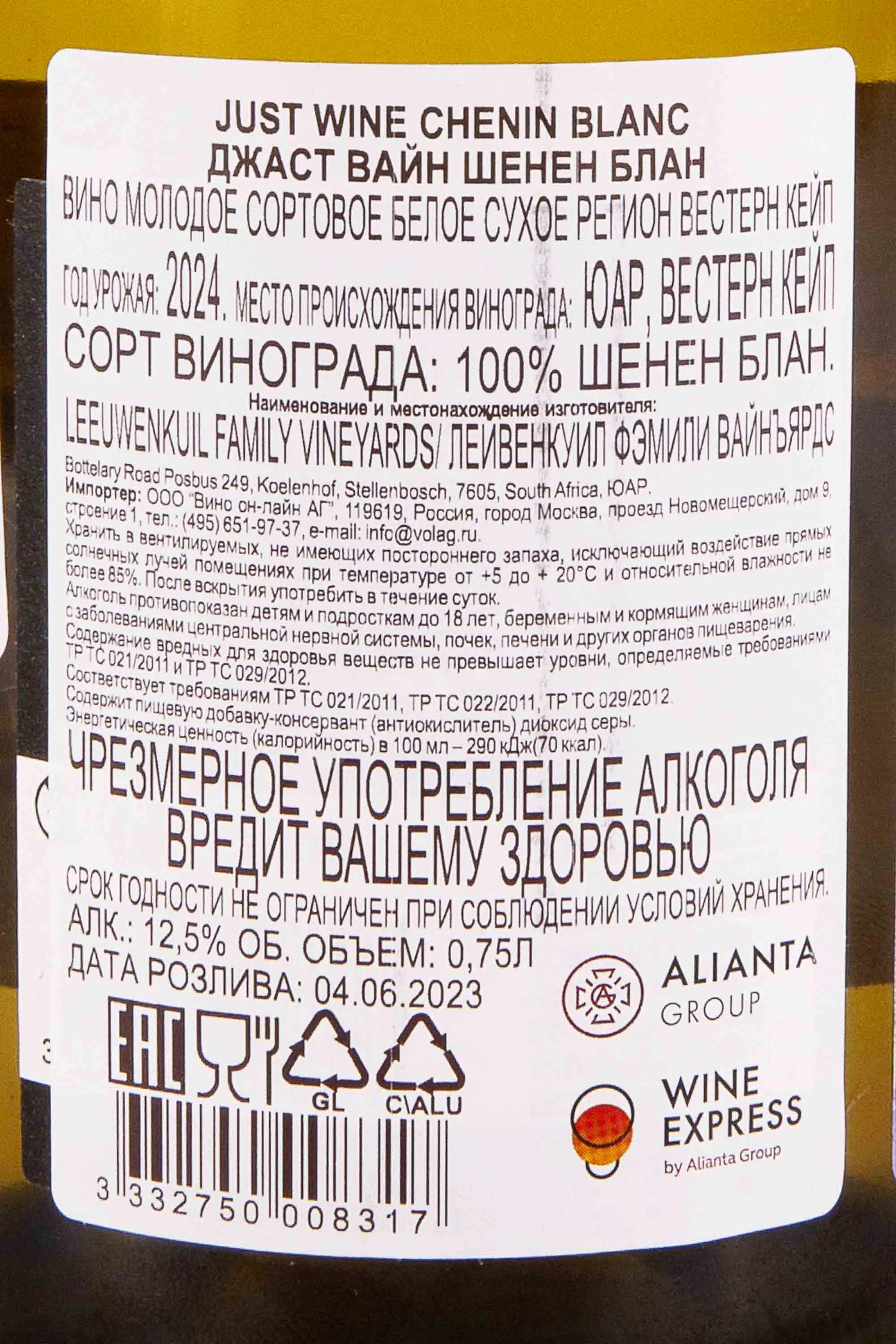 Just Wine Chenin Blanc 0.75 л купить - Южноафриканское вино Джаст Вайн Шенен Блан цена в магазинег. Москва, ул. Профсоюзная, д. 16/1010:00-22:00 Ежедневно+7 (495) 920-20-02info@cru.ru