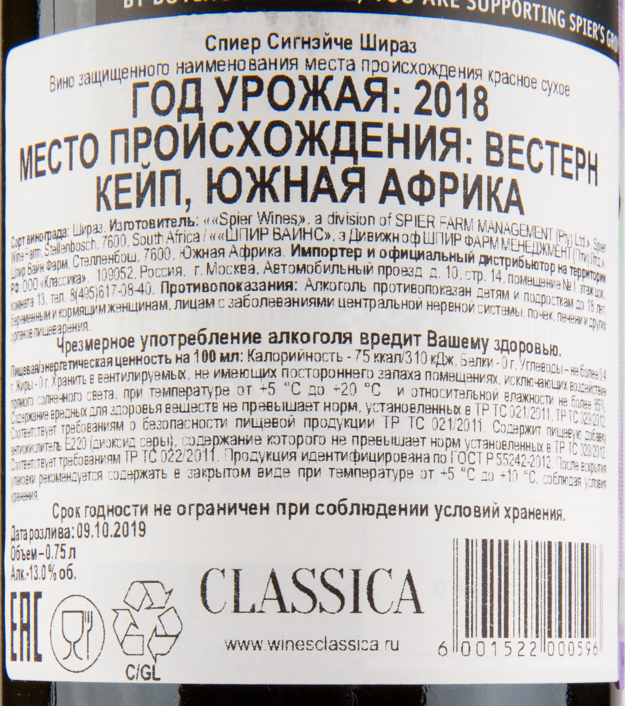 Spier Signature Shiraz 2018 0.75 л купить - Южноафриканское вино Спиер Сигнэйче Шираз цена в магазинег. Москва, ул. Профсоюзная, д. 16/1010:00-22:00 Ежедневно+7 (495) 920-20-02info@cru.ru