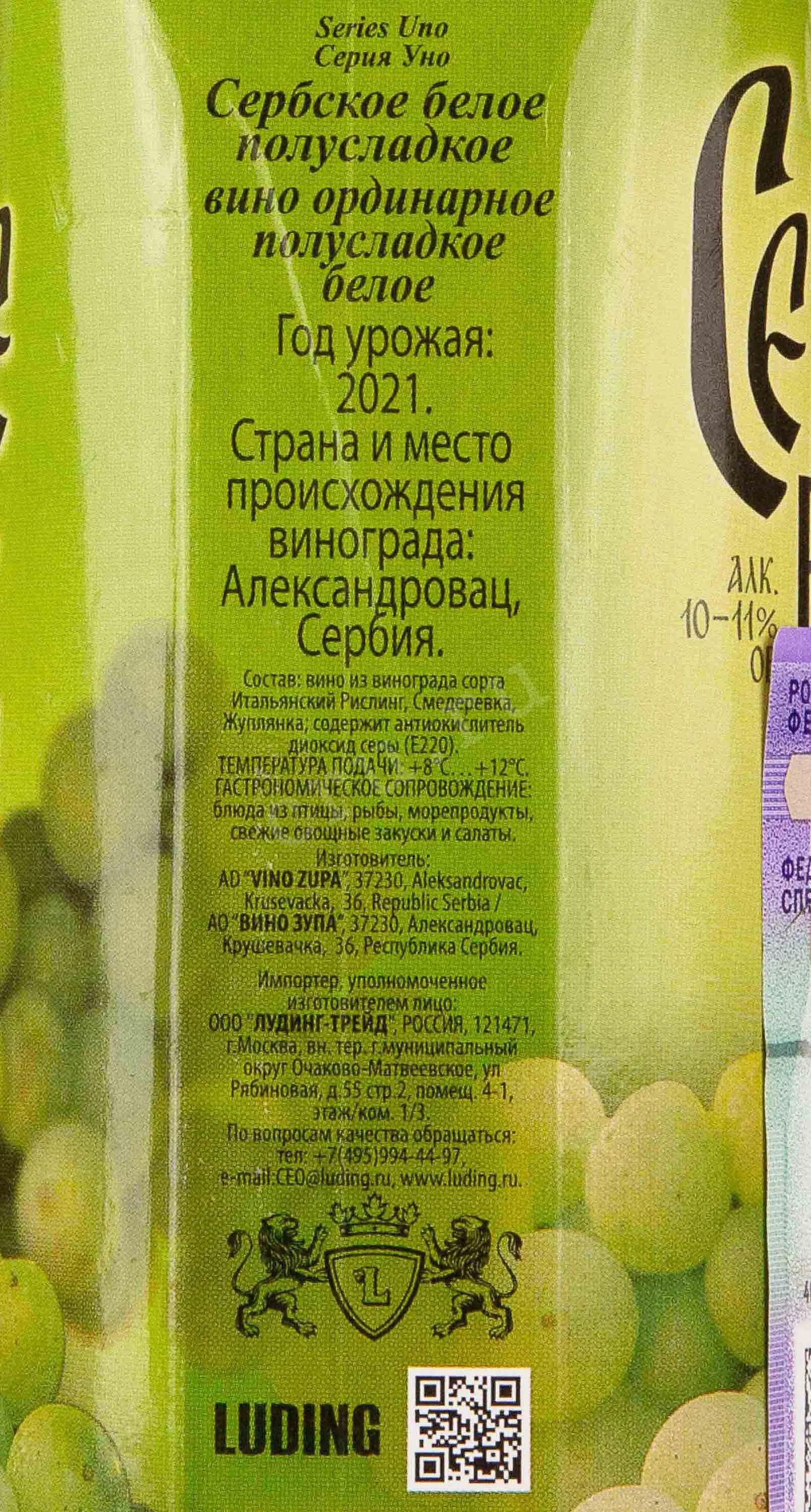 Вино Зупа Сербское 2021 1