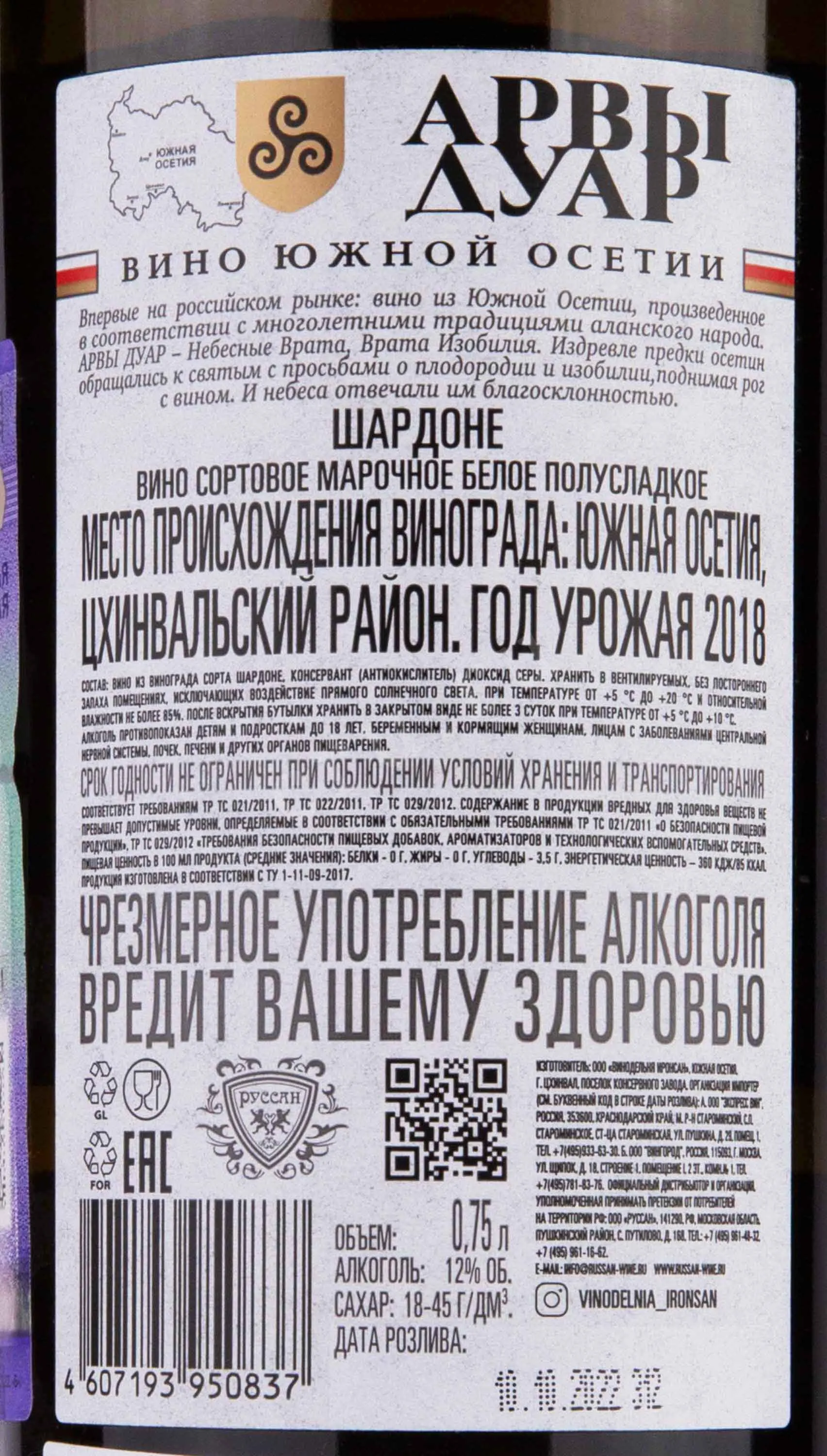 Arves Duar Chardonnay 0.75 л купить - Южноосетинское вино Арвы Дуар Шардоне цена в магазинег. Москва, ул. Профсоюзная, д. 16/1010:00-22:00 Ежедневно+7 (495) 920-20-02info@cru.ru