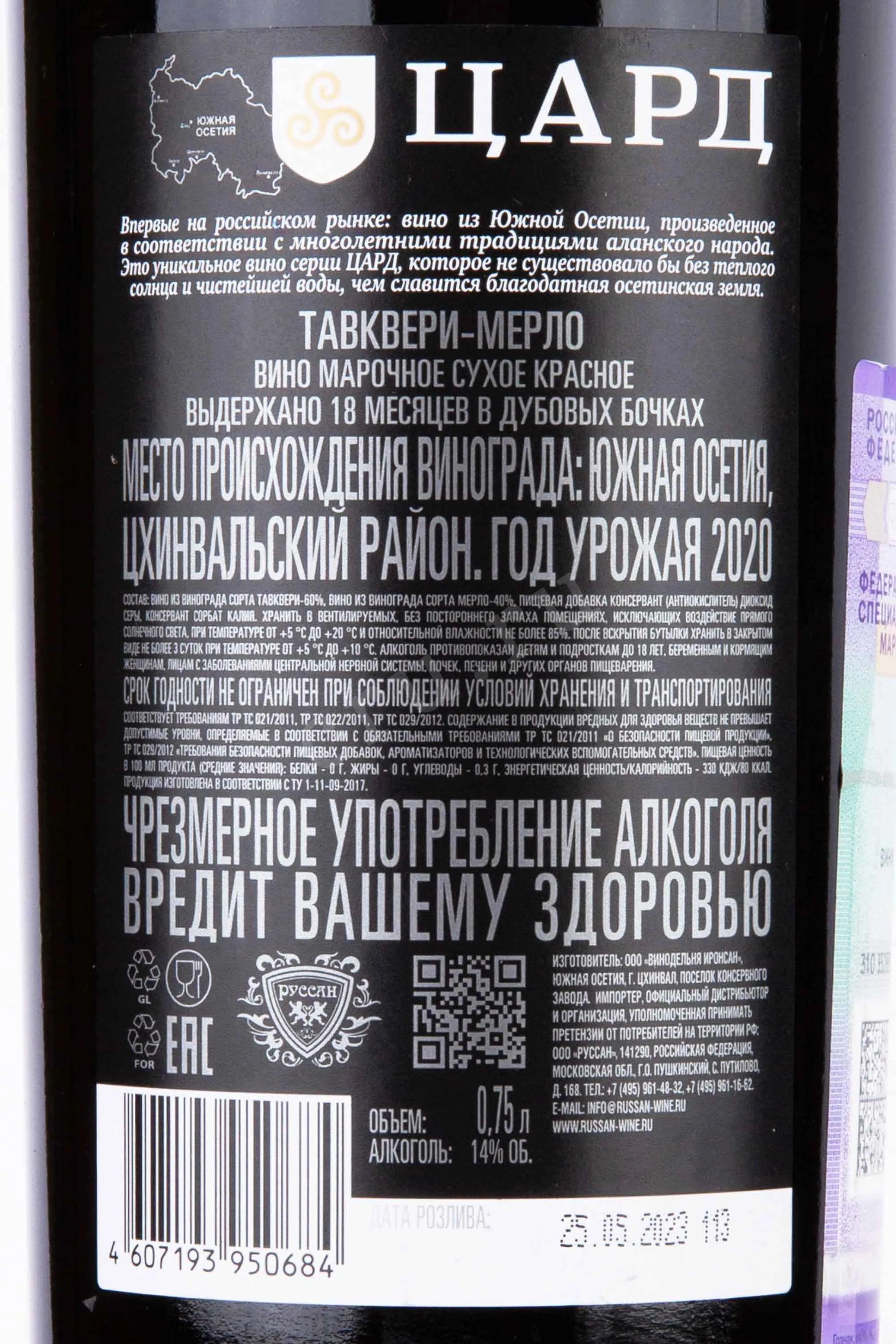 Tsard Tavkveri-Merlot 0.75 л купить - Южноосетинское вино Цард Тавквери-Мерло цена в магазине