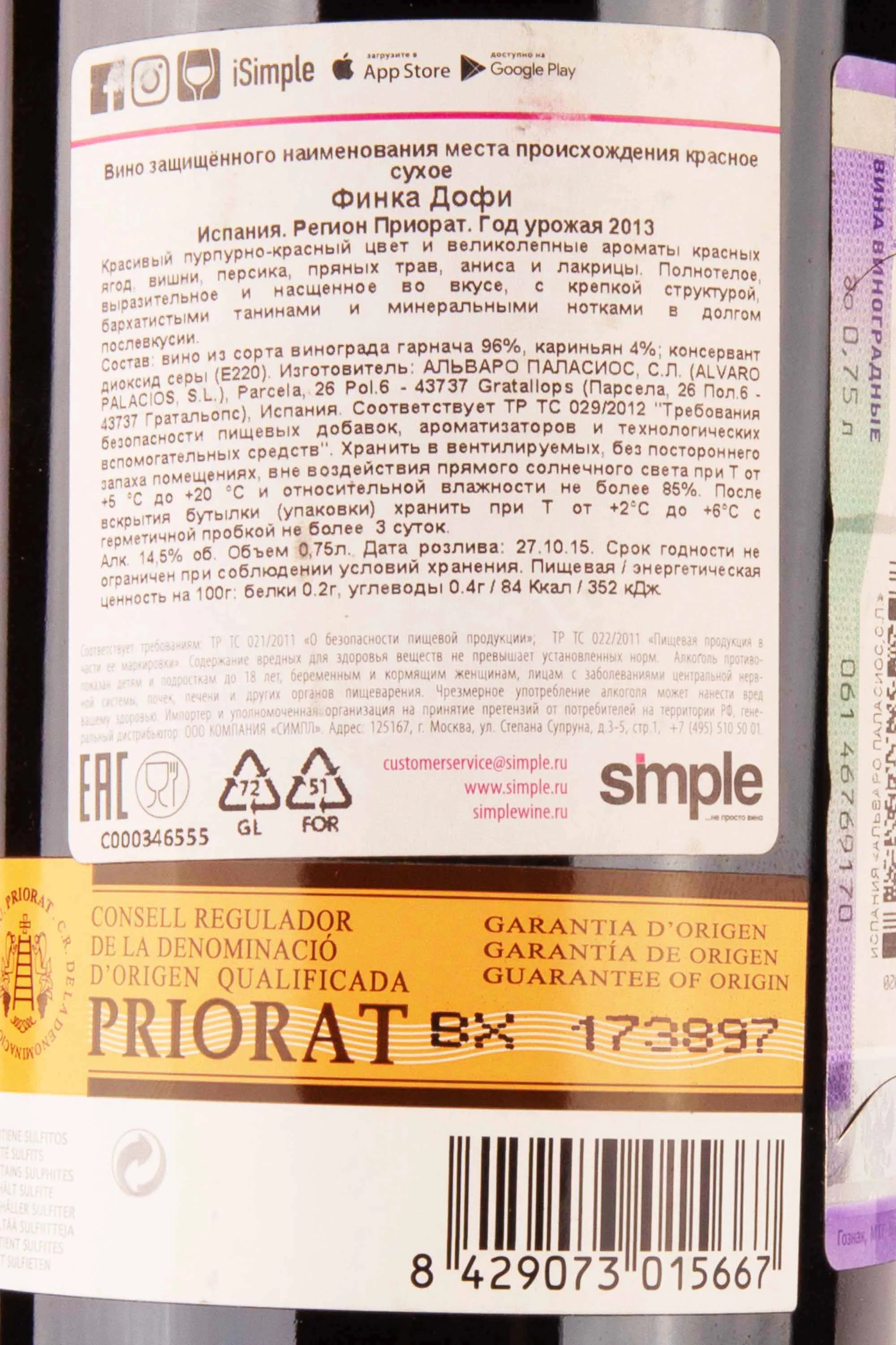 Вино Alvaro Palacios Priorat Finca Dofi 2013 0.75 л