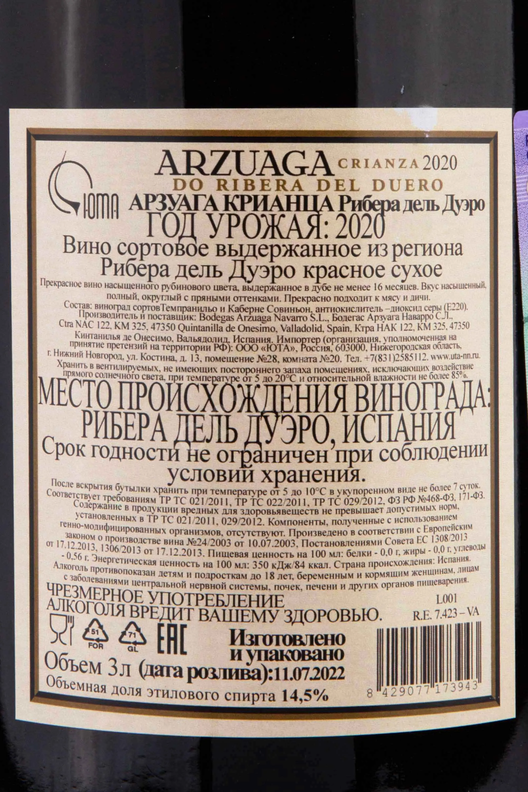 Изготовитель: Бодегас Арзуага Наварро С.Л.
