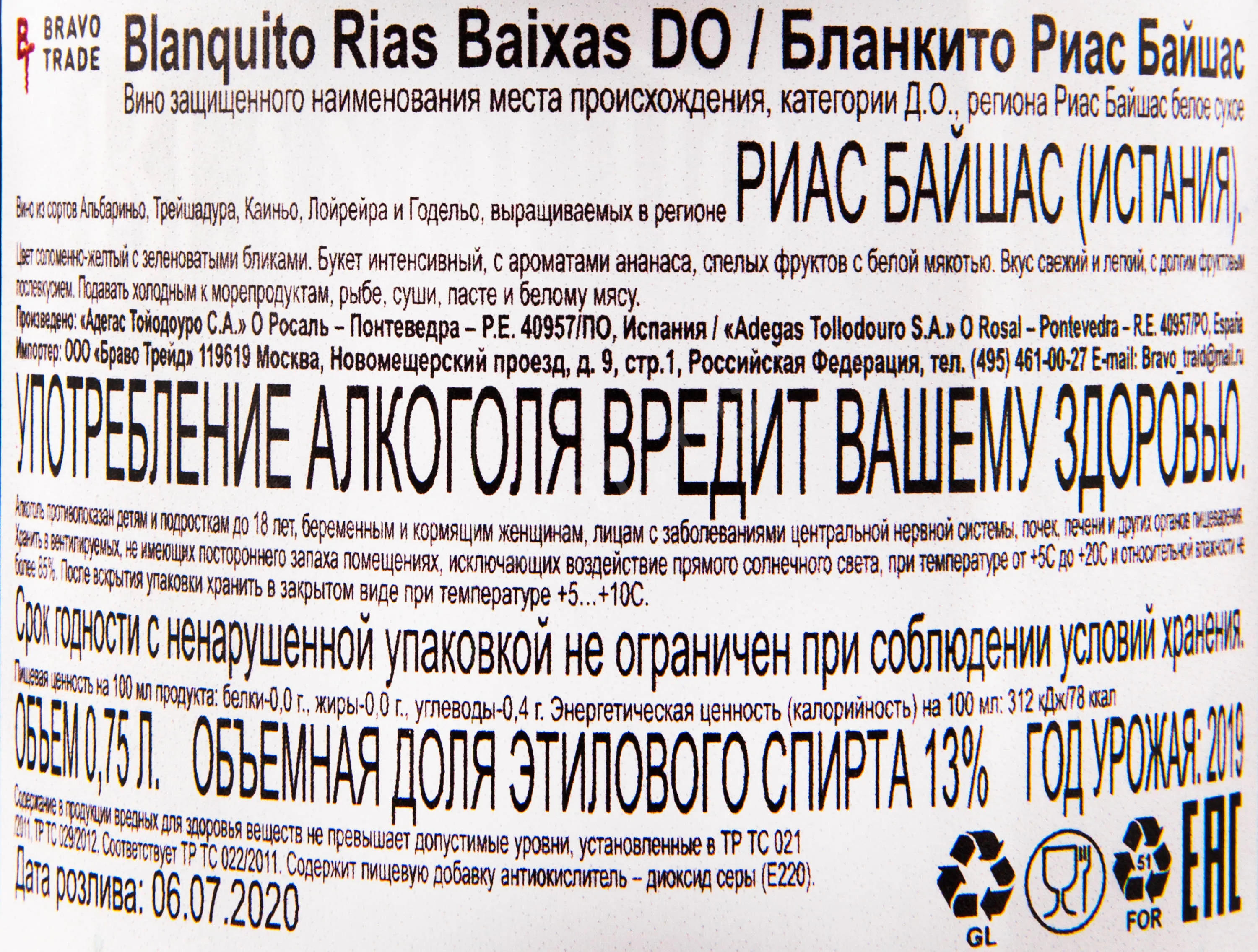 Вино Blanquito Rias Baixas 2019 0.75 л