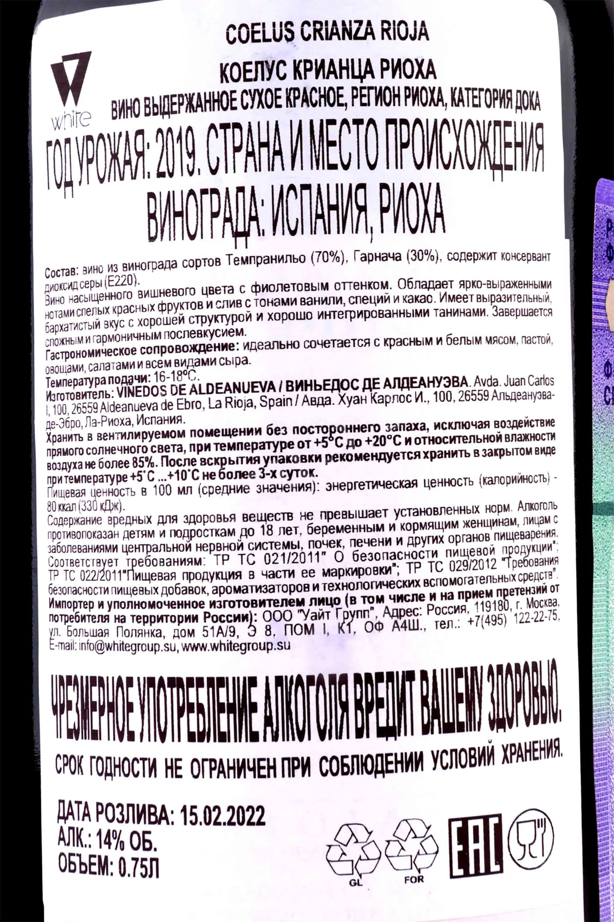 Вино Coelus Crianza Rioja 2019 0.75 л