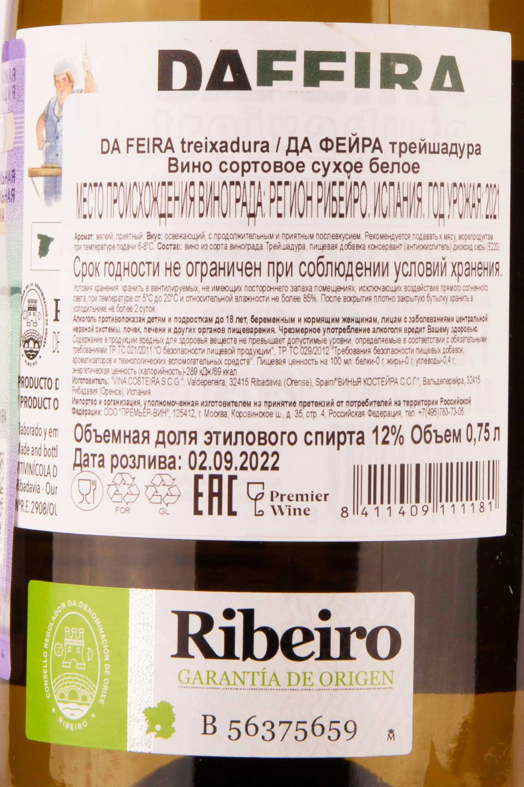 Da Feira Treixadura 0.75 л купить - Испанское вино Да Фейра Трейшадура цена в магазине г. Москва, ул. Профсоюзная, д. 16/10 10:00-22:00 Ежедневно +7 (495) 920-20-02 info@cru.ru