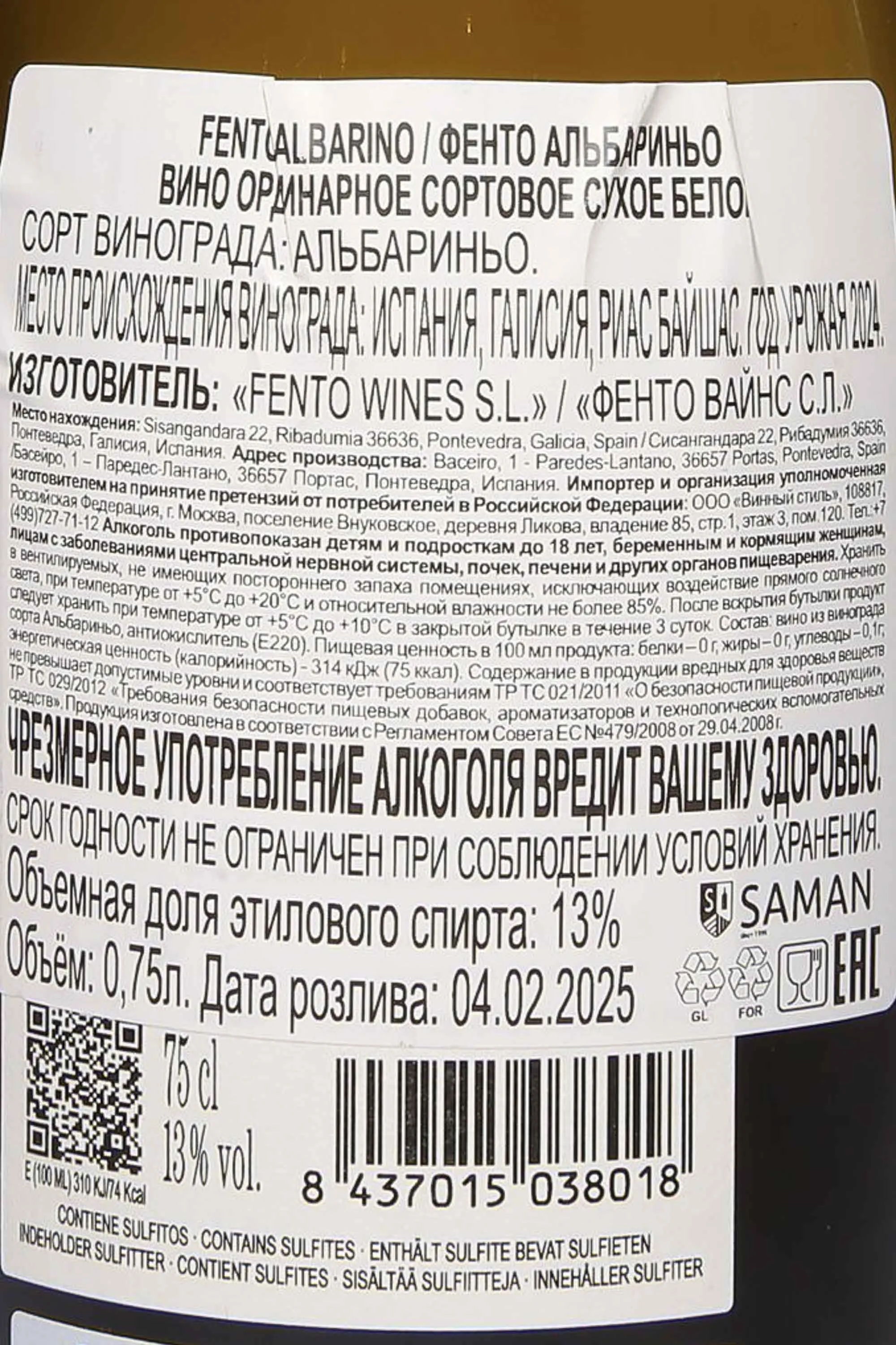 Белое сухое вино Fento Albarino 2024 года 0,75 л создано в регионе Риас Байшас на северо-западе Испании. Этот терруар известен прохладным атлантическим климатом и гранитными почвами, что придает вину минеральность и свежесть. 2024 год отличался мягкой зимой и теплым летом с умеренными осадками, благодаря чему ягоды вызрели равномерно и сохранили высокую кислотность. Винификация проходила в стальных емкостях при контролируемой температуре, что позволило сохранить яркий аромат и чистоту вкуса. Выдержка проходила без использования дуба, что дало возможность подчеркнуть природный характер сорта. Вино получило положительные отзывы от винных критиков за точность стиля и гармонию, а также стало частью коллекций известных рестораторов.