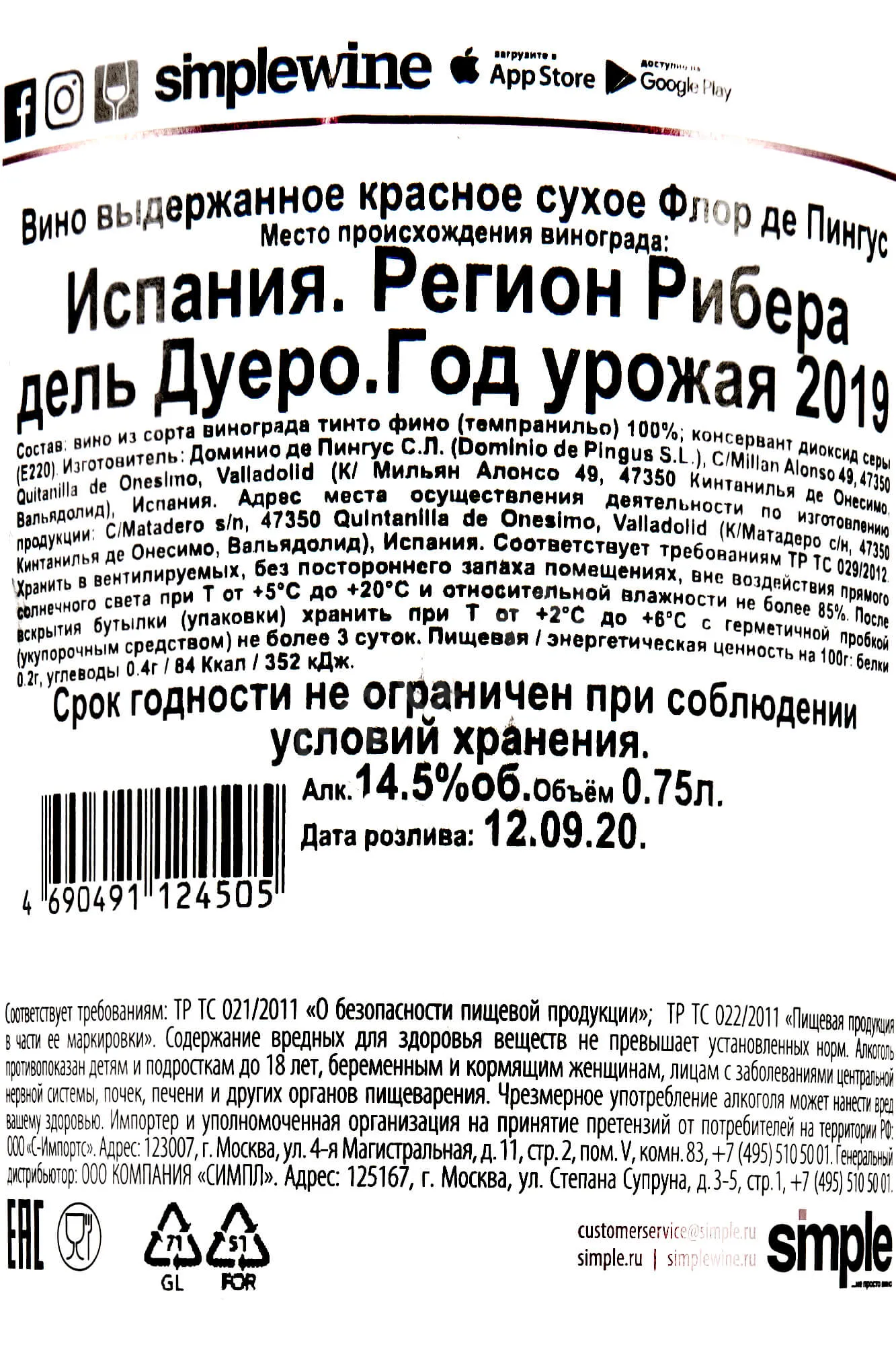 Flor de Pingus 2018 0.75 л купить - Испанское вино Флор де Пингус цена в магазинег. Москва, ул. Профсоюзная, д. 16/1010:00-22:00 Ежедневно+7 (495) 920-20-02info@cru.ru