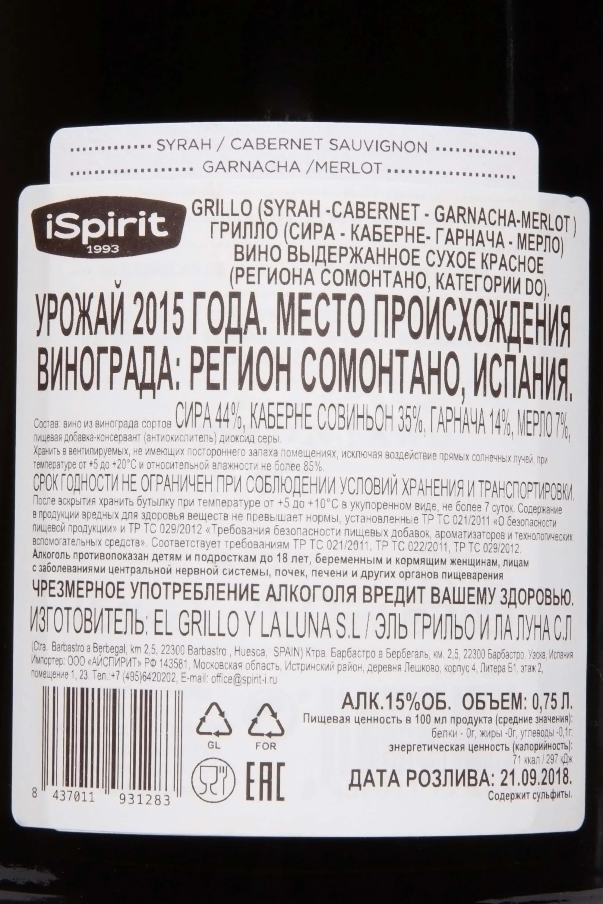 Красное сухое вино El Grillo, Grillo Somontano DO 2015 года 0,75 л создано в регионе Сомонтано, известном своим прохладным климатом и контрастами температур между днем и ночью. Эти условия позволяют ягодам сохранять баланс между сахаром и кислотностью. 2015 год был теплым, с редкими дождями, что дало винограду насыщенность и зрелость. Ферментация протекала в дубе — французских бочках по 225 л, и в них осуществлялась выдержка на протяжении года. Перед розливом вино охладили до 16 градусов и осветлили гравитационным способом. Уникальность Грильо Сомонтано заключается в редкой гармонии: оно сочетает силу, свежесть и долгий потенциал хранения. Винтаж 2015 года получил золото на международном конкурсе Mundus Vini Spring Tasting.