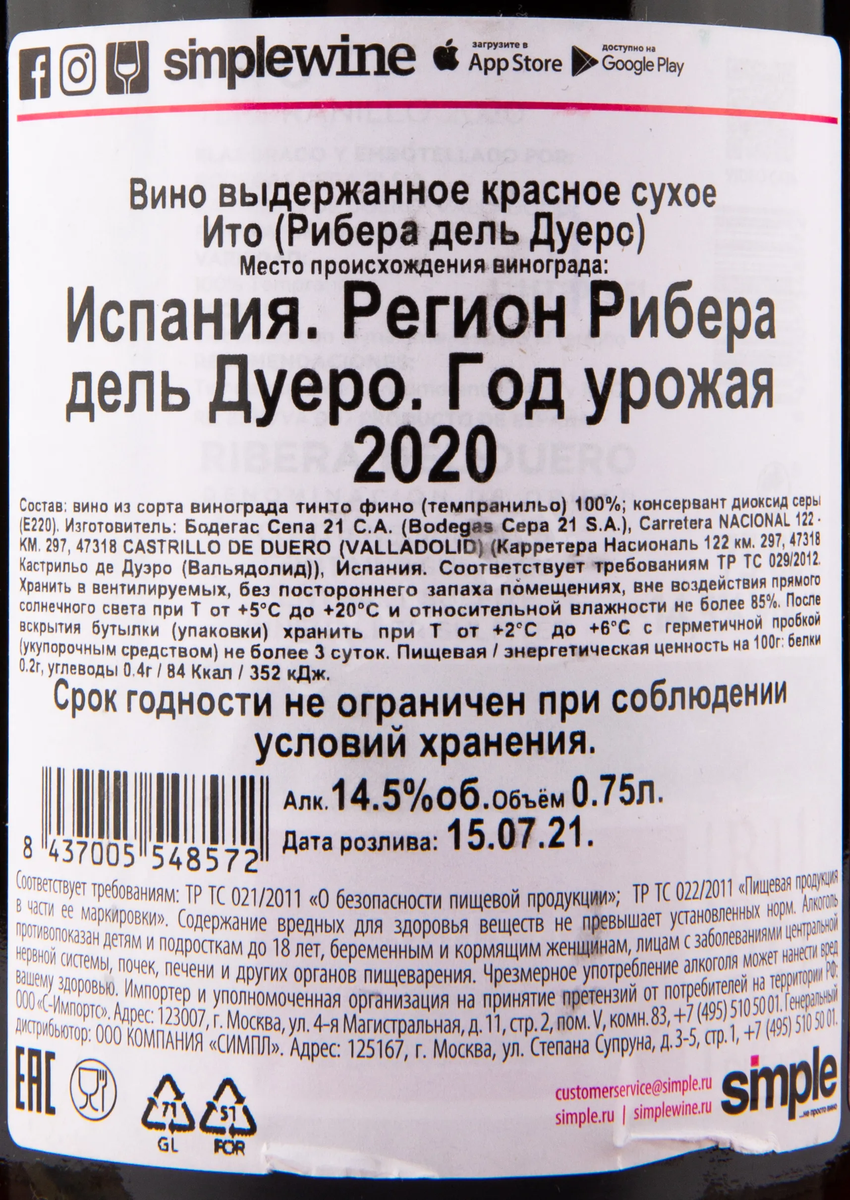 Hito Ribera Del Duero 2020 0.75 л купить - Испанское вино Ито Рибера дель Дуеро цена в магазинег. Москва, ул. Профсоюзная, д. 16/1010:00-22:00 Ежедневно+7 (495) 920-20-02info@cru.ru