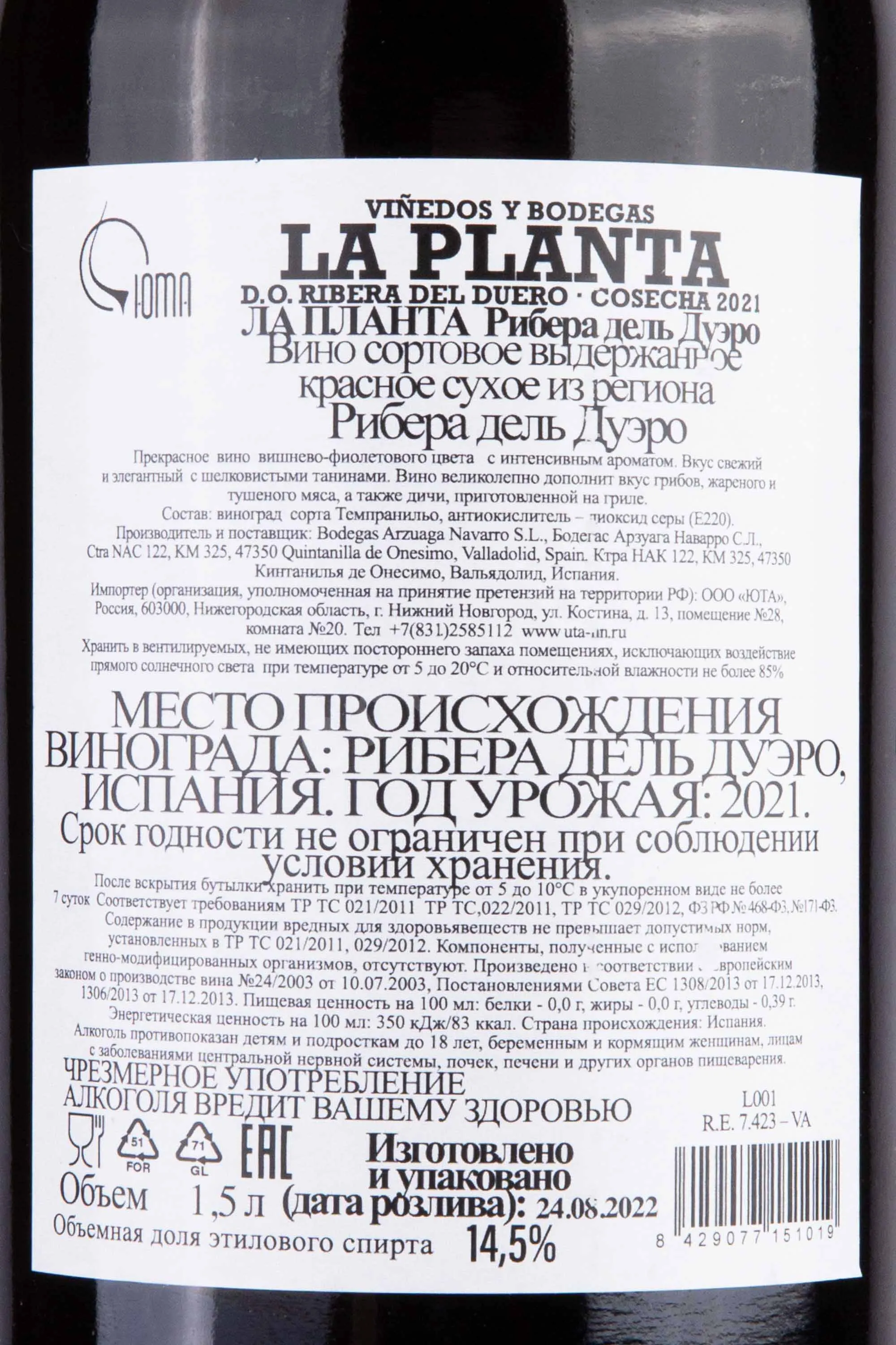 La Planta 1.5 л купить - Испанское вино Ла Планта цена в магазине г. Москва, ул. Профсоюзная, д. 16/10 10:00-22:00 Ежедневно +7 (495) 920-20-02 info@cru.ru