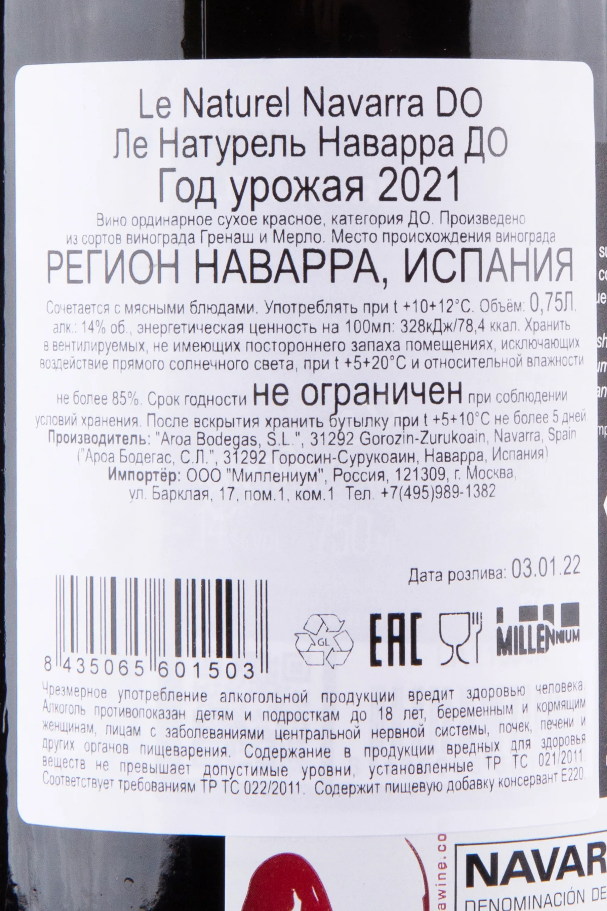 Вино Le Naturel Navarra DO 2020 0.75 л