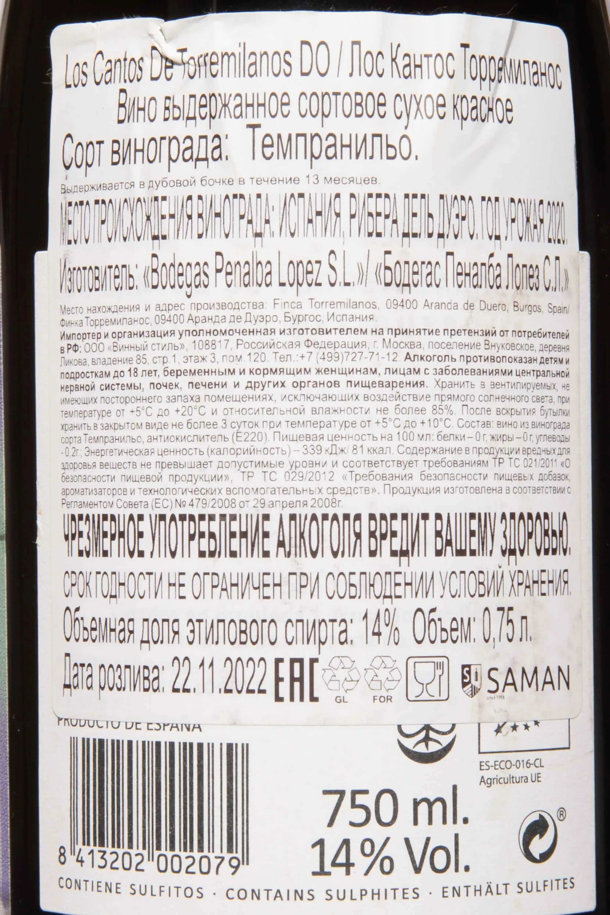 Вино Los Cantos Torremilanos 2018 г. 0.75 l – это испанский алкоголь из урожая одного года, созданный по принципу биодинамического земледелия в регионе Рибера дель Дуэро. Вручную собранный виноград подвергают ферментации при контролируемой температуре в резервуарах из нержавеющей стали и бетона. Красное сухое вино выдерживается 13 месяцев в бочках из французского и американского дуба. Перед бутилированием напиток осветляют с помощью яичного белка и фильтруют. Вино имеет крепость 14.5% и потенциал хранения до 5 лет.