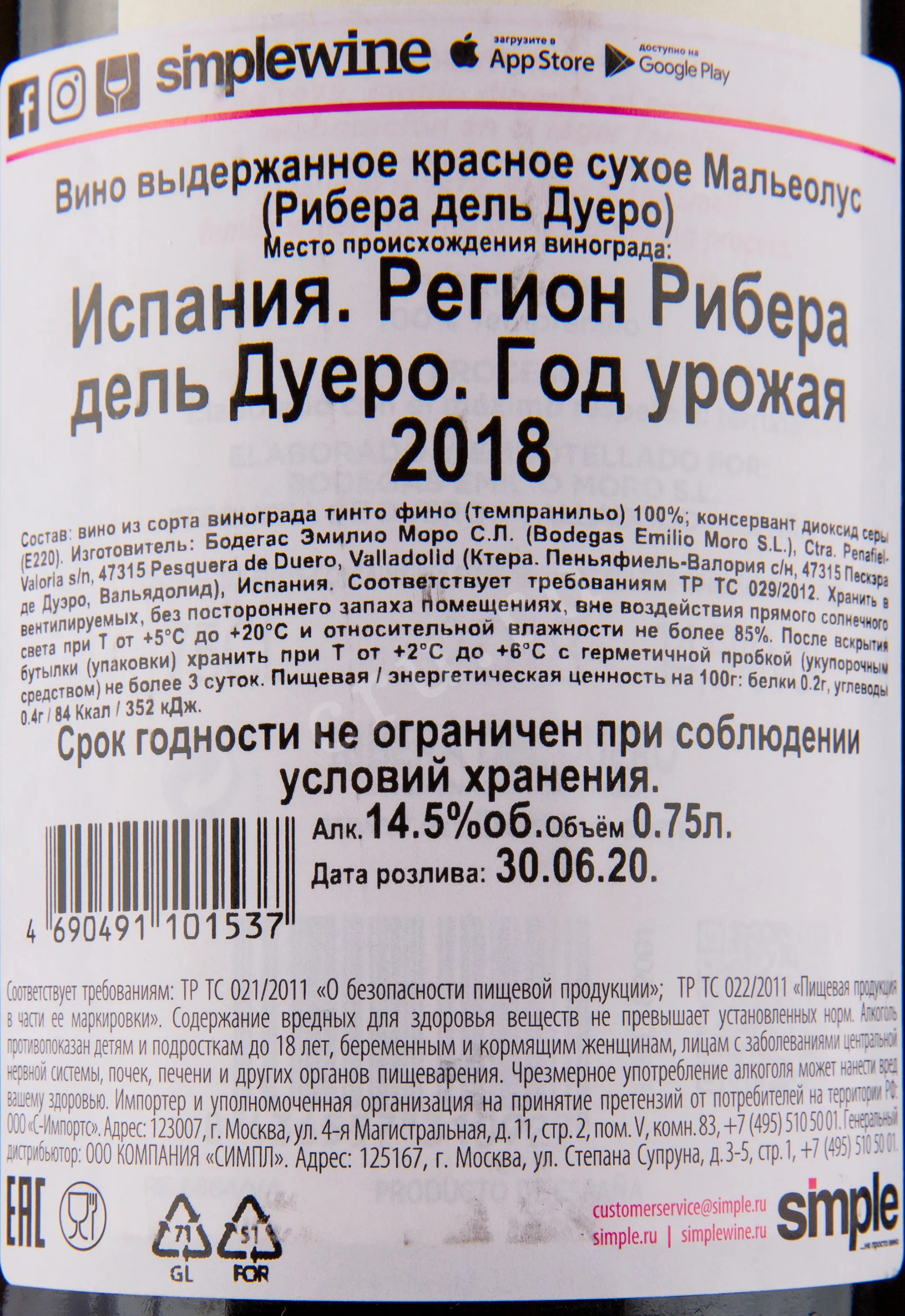Malleolus Emilio Moro 0.75 л купить - Испанское вино Мальеолус Эмилио Моро цена в магазинег. Москва, ул. Профсоюзная, д. 16/1010:00-22:00 Ежедневно+7 (495) 920-20-02info@cru.ru