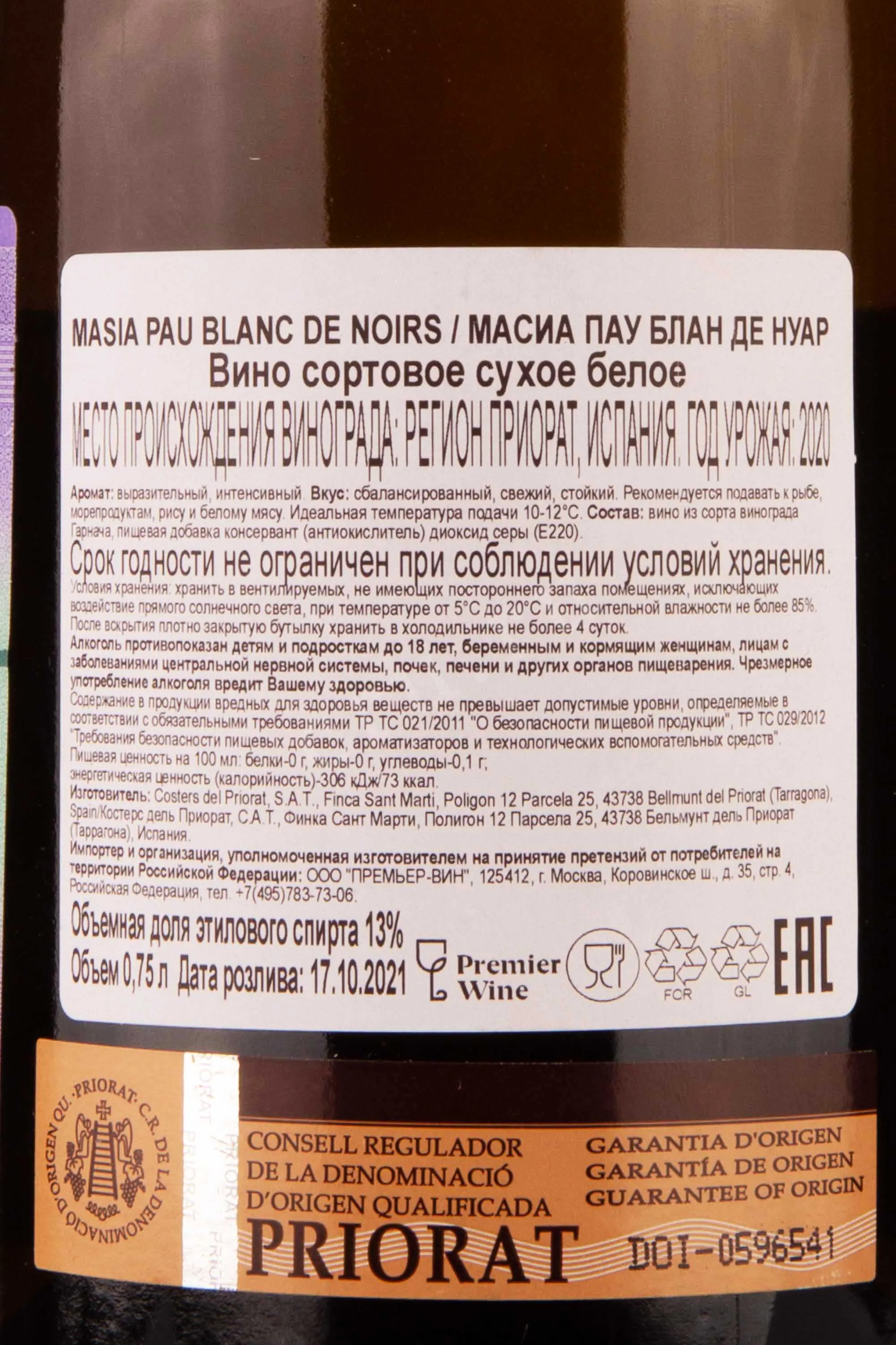 Масиа Пау Блан Де Нуар 2020 0.75
