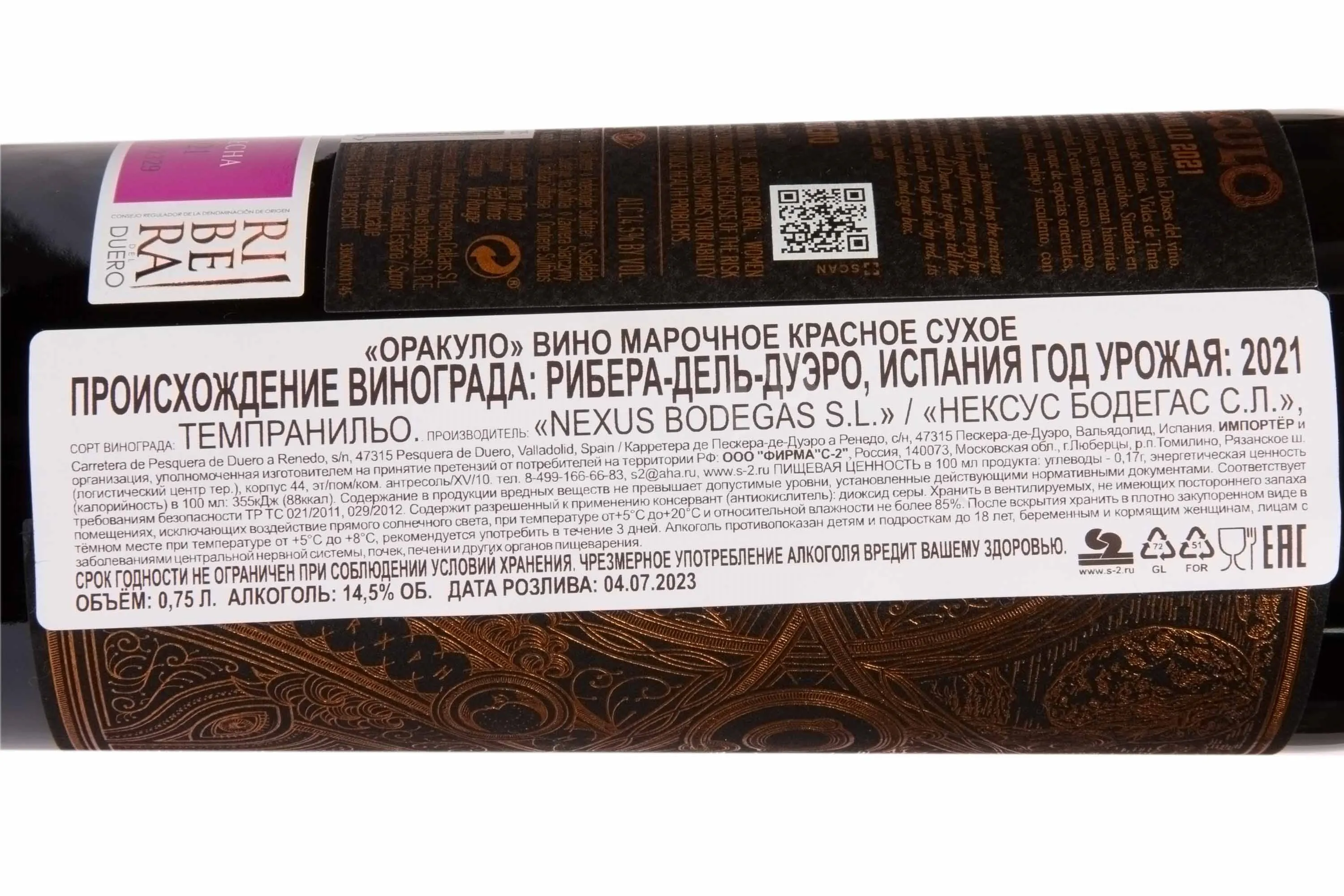 Оракуло Темпранильо Рибера-Дель-Дуэро ДО в подарочной упаковке 2021 0.75