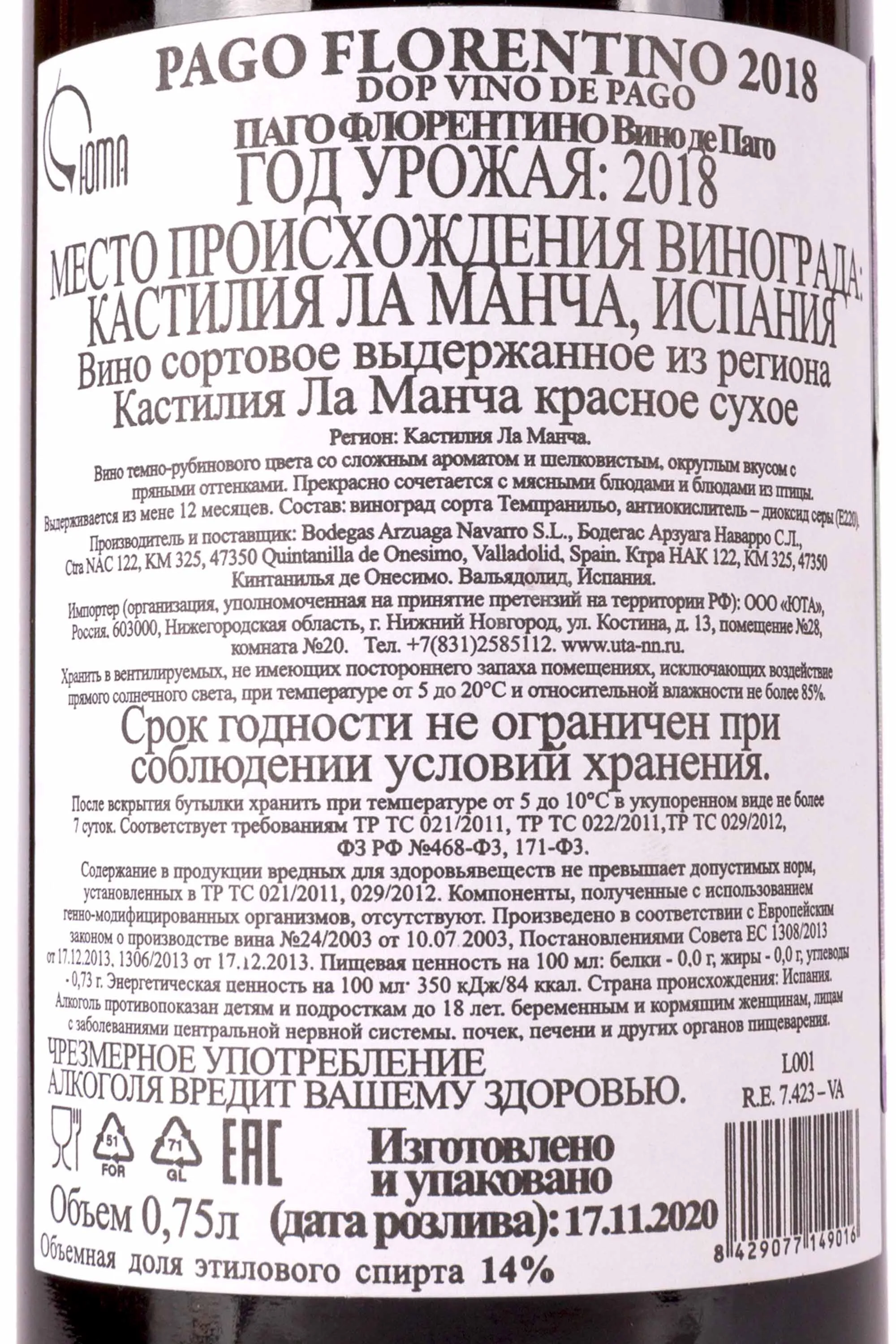 Изготовитель: "Бодегас Арзуага"