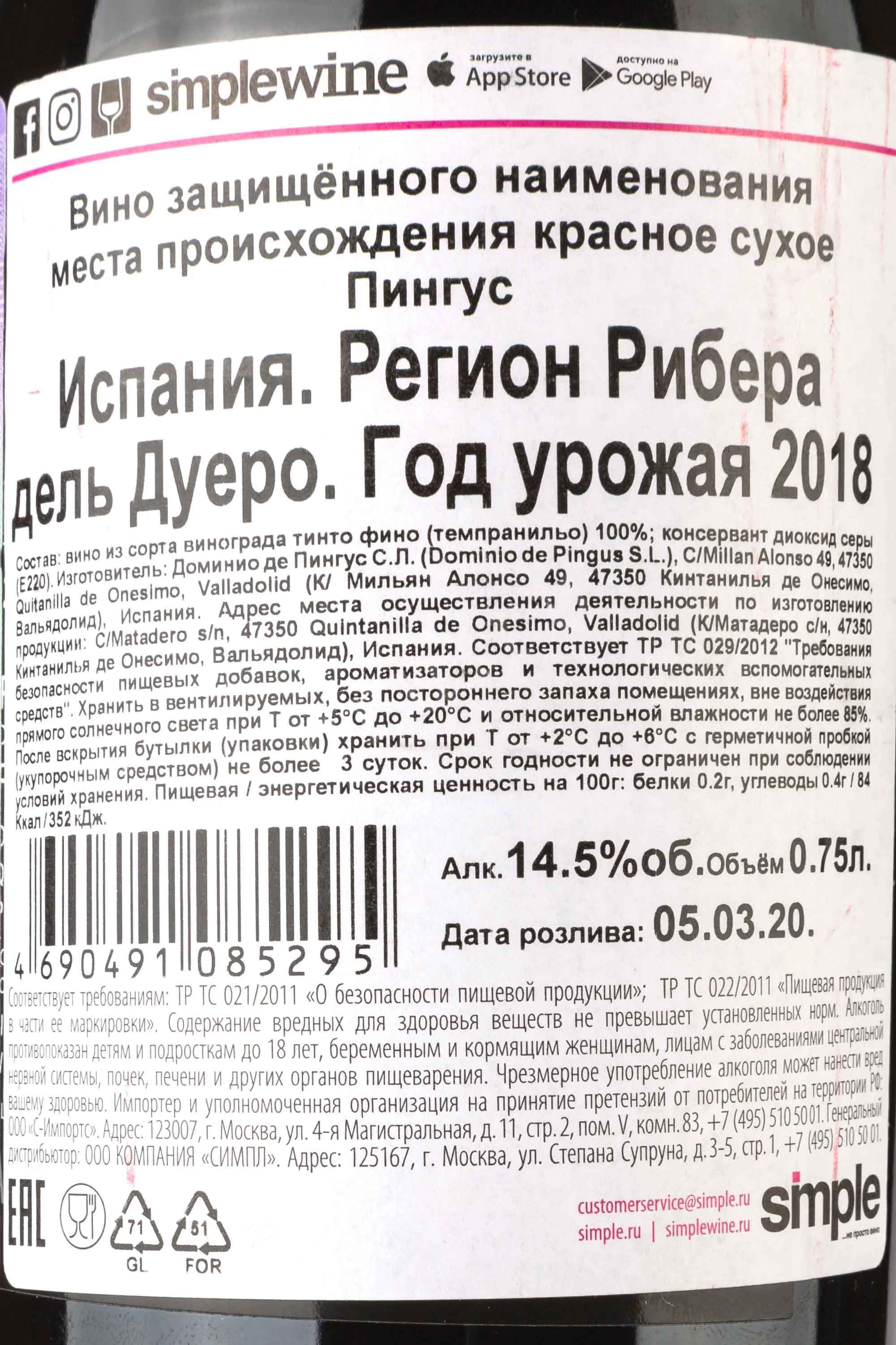 Пингус Рибера дель Дуеро 2018 0.75