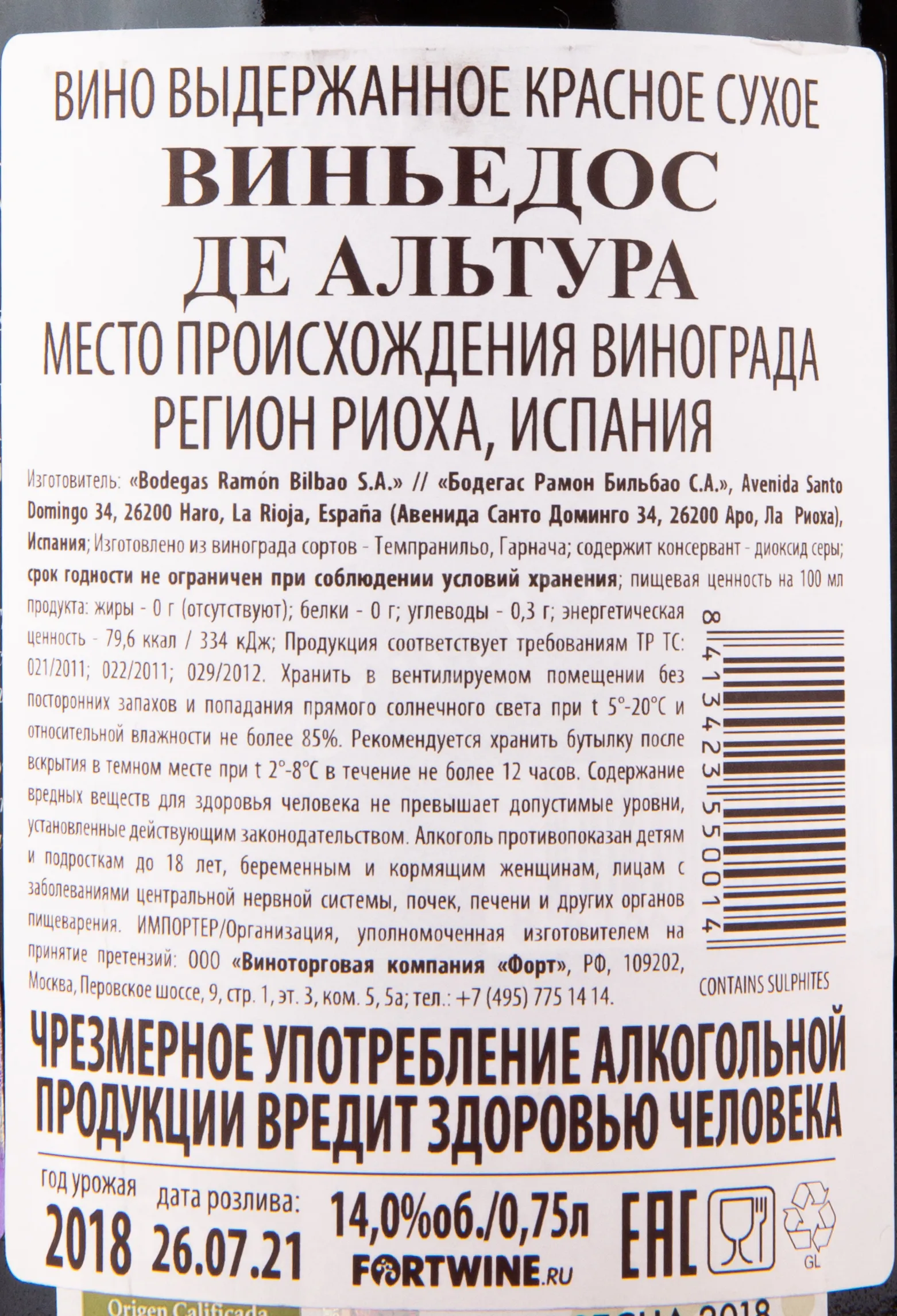 Вино Ramon Bilbao Vinedos de Altura 2018 0.75 л