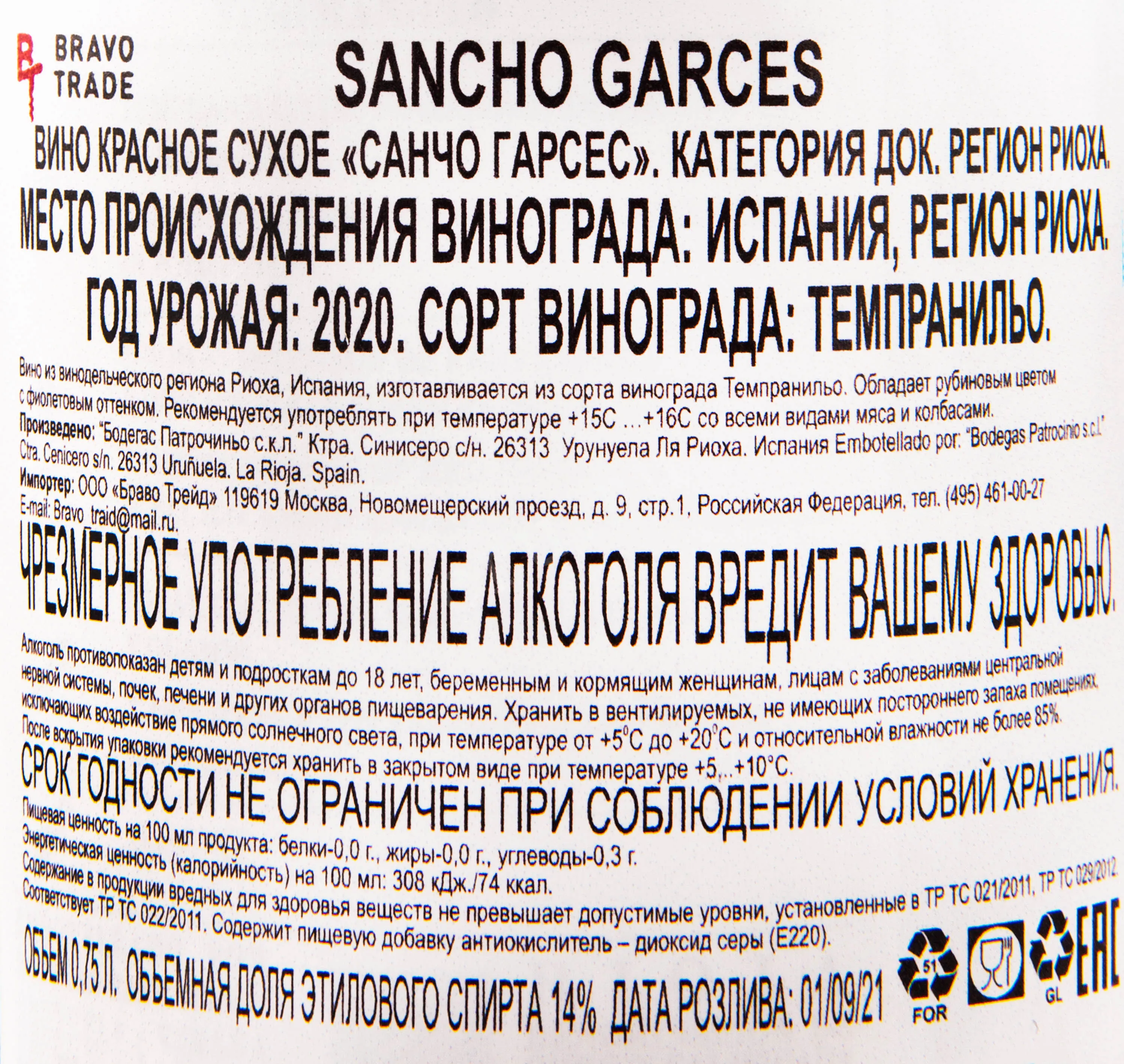 Sancho Garces Rioja 0.75 л купить - Испанское вино Санчо Гарсес цена в магазине г. Москва, ул. Профсоюзная, д. 16/10 10:00-22:00 Ежедневно +7 (495) 920-20-02 info@cru.ru