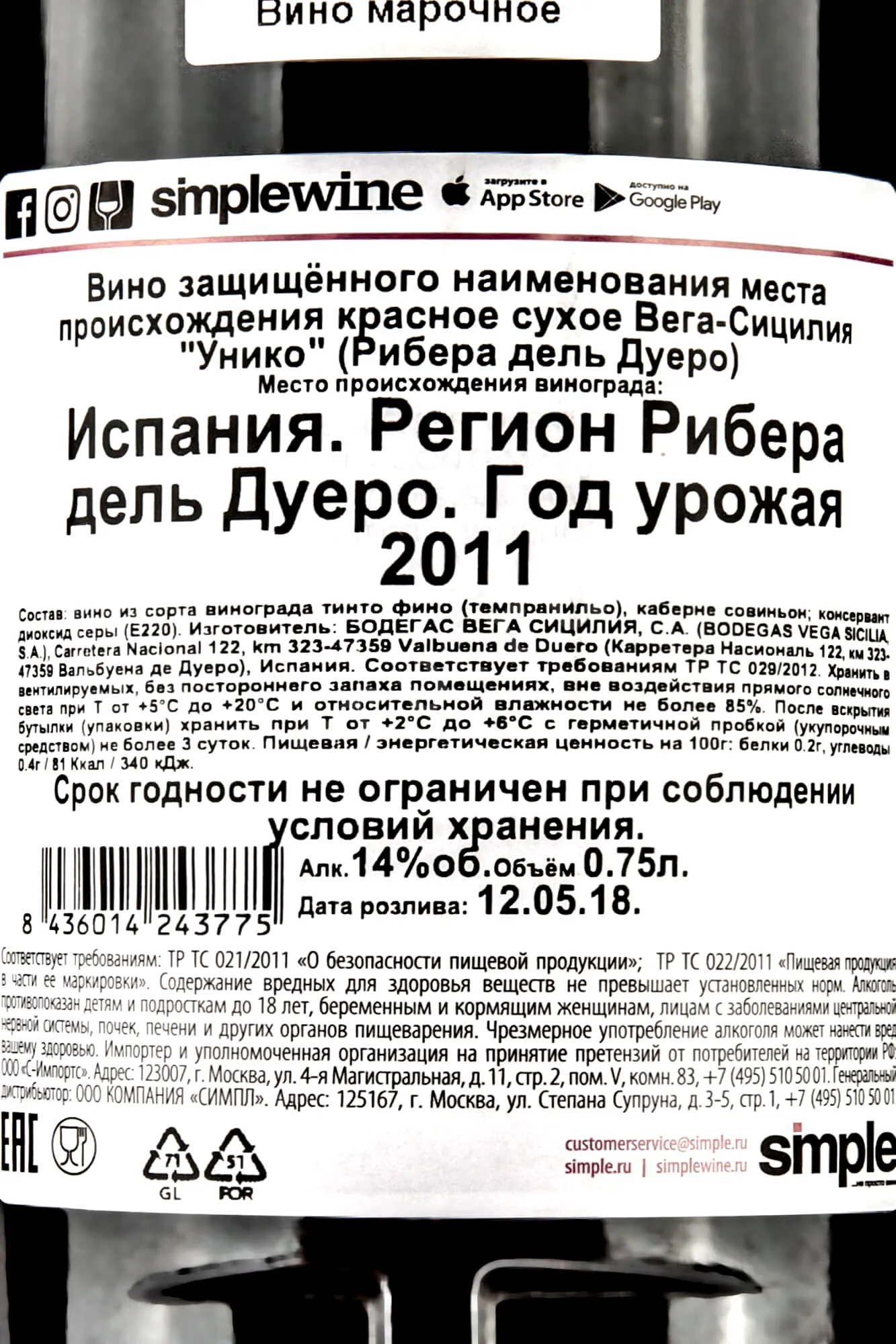 Vega-Sicilia Unico 2011 0.75 л купить - Испанское вино Вега Сицилия Унико цена в магазинег. Москва, ул. Профсоюзная, д. 16/1010:00-22:00 Ежедневно+7 (495) 920-20-02info@cru.ru