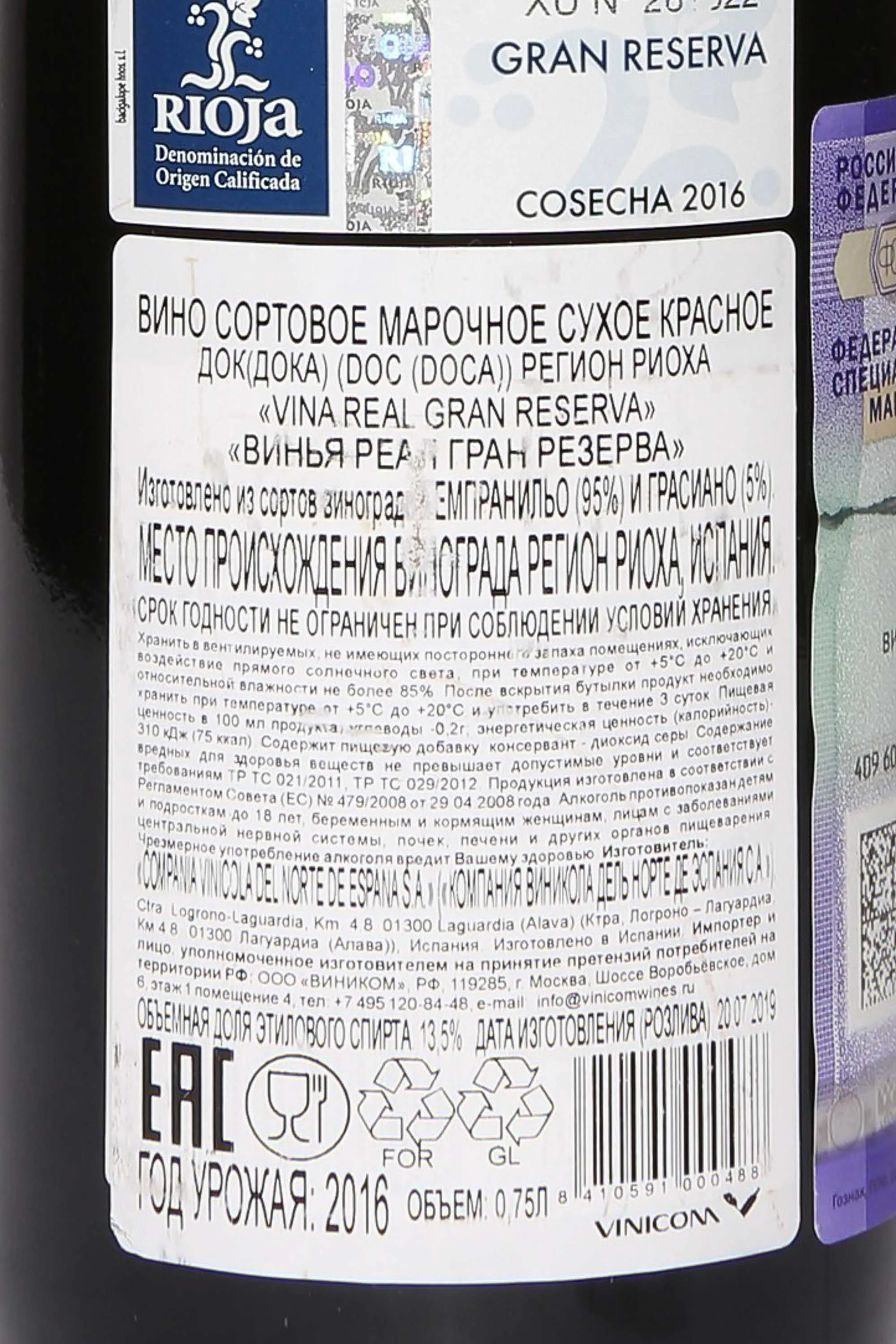 Красное сухое вино Vina Real Grand Reserva DOCa 2016 года 0,75 л представляет собой классический пример благородной Риохи с утонченной структурой и долгим потенциалом хранения. Виноград сортов Темпранильо и Грасиано собран вручную на виноградниках Риохи Алавеса, где климат с атлантическим влиянием и глинисто-известковые почвы с высоким содержанием железа позволяют ягодам достигать идеального баланса зрелости и кислотности. 2016 год отличился ровной погодой и мягкой осенью, что обеспечило гармоничное созревание. Ферментация проходила в нержавеющих емкостях с ремонтажем, затем яблочно-молочное брожение — в дубовых бочках. Вино выдерживалось два года в дубе и не менее трех лет в бутылках, что сделало его элегантным и шелковистым. Винтаж получил 90+ баллов от Wine Spectator, Robert Parker и James Suckling.
