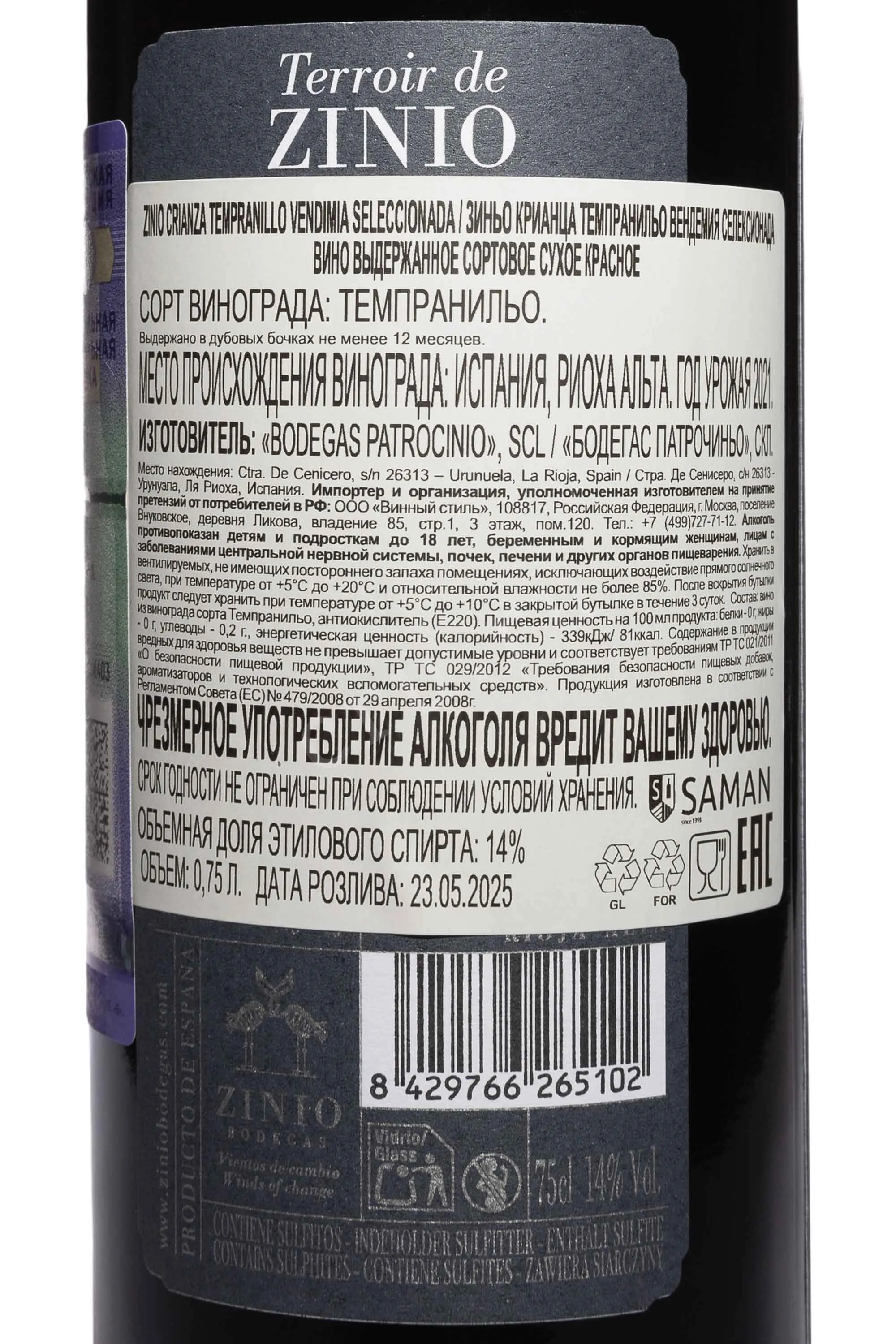 Красное сухое вино Zinio Tempranillo Vendimia Seleccionada 2021 года 0,75 л создано в классическом стиле Риохи. Виноград выращен в зоне Rioja Alta, где почвы богаты известняком и глиной, а климат умеренный с перепадами температур. Ферментация проходила в стальных емкостях при контролируемой температуре, что сохранило свежесть аромата. Выдержка 12 месяцев в американском и французском дубе добавила структуру и глубину вкуса. Вино выделяется гармонией фруктовых и древесных оттенков, что отмечают винные критики. Лимитированный выпуск и строгий отбор винограда подчеркивают уникальность этой серии.