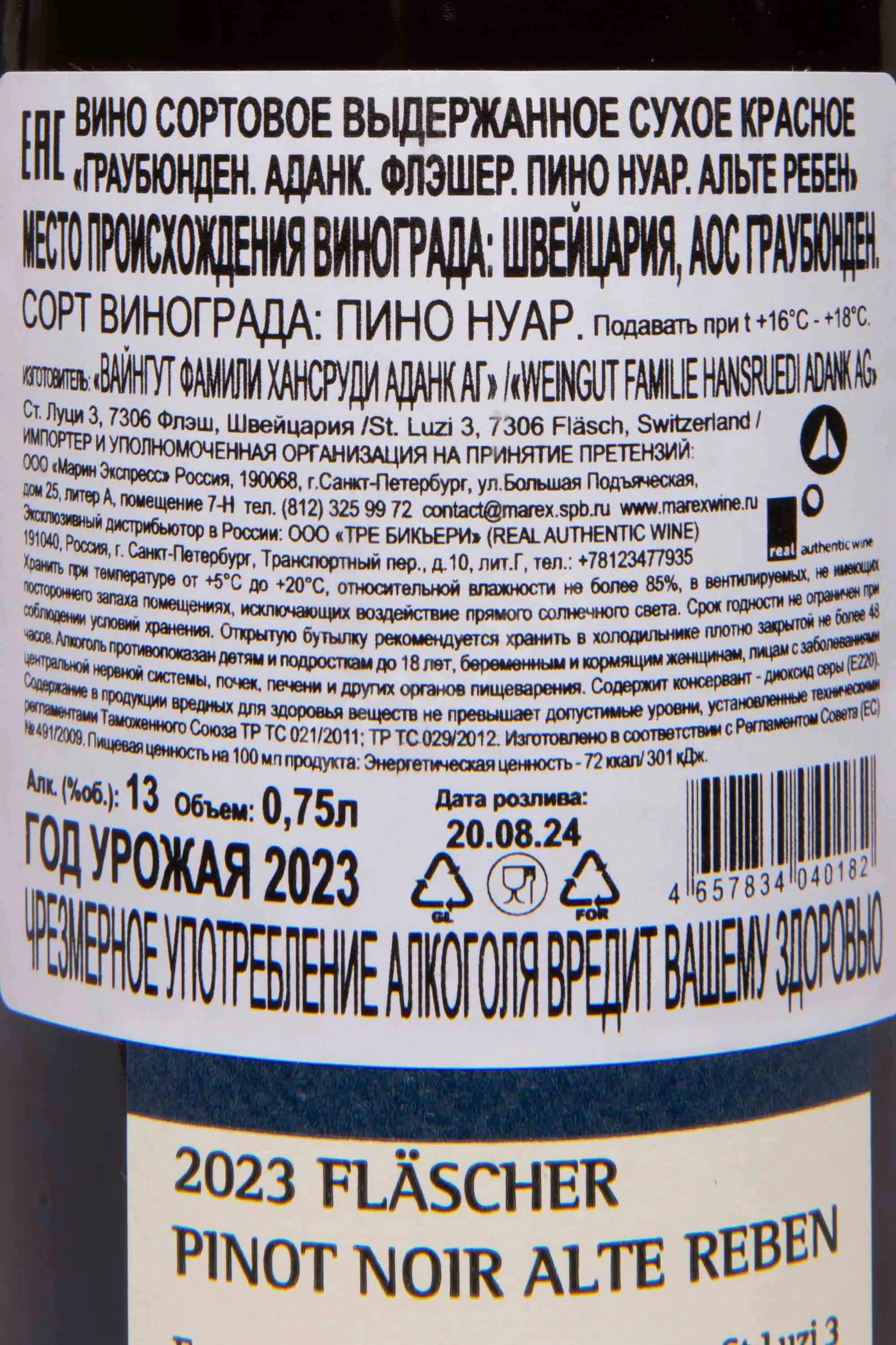 Аданк Флэшер Пино Нуар Старые Лозы АОС Граубюнден 2023 0.75