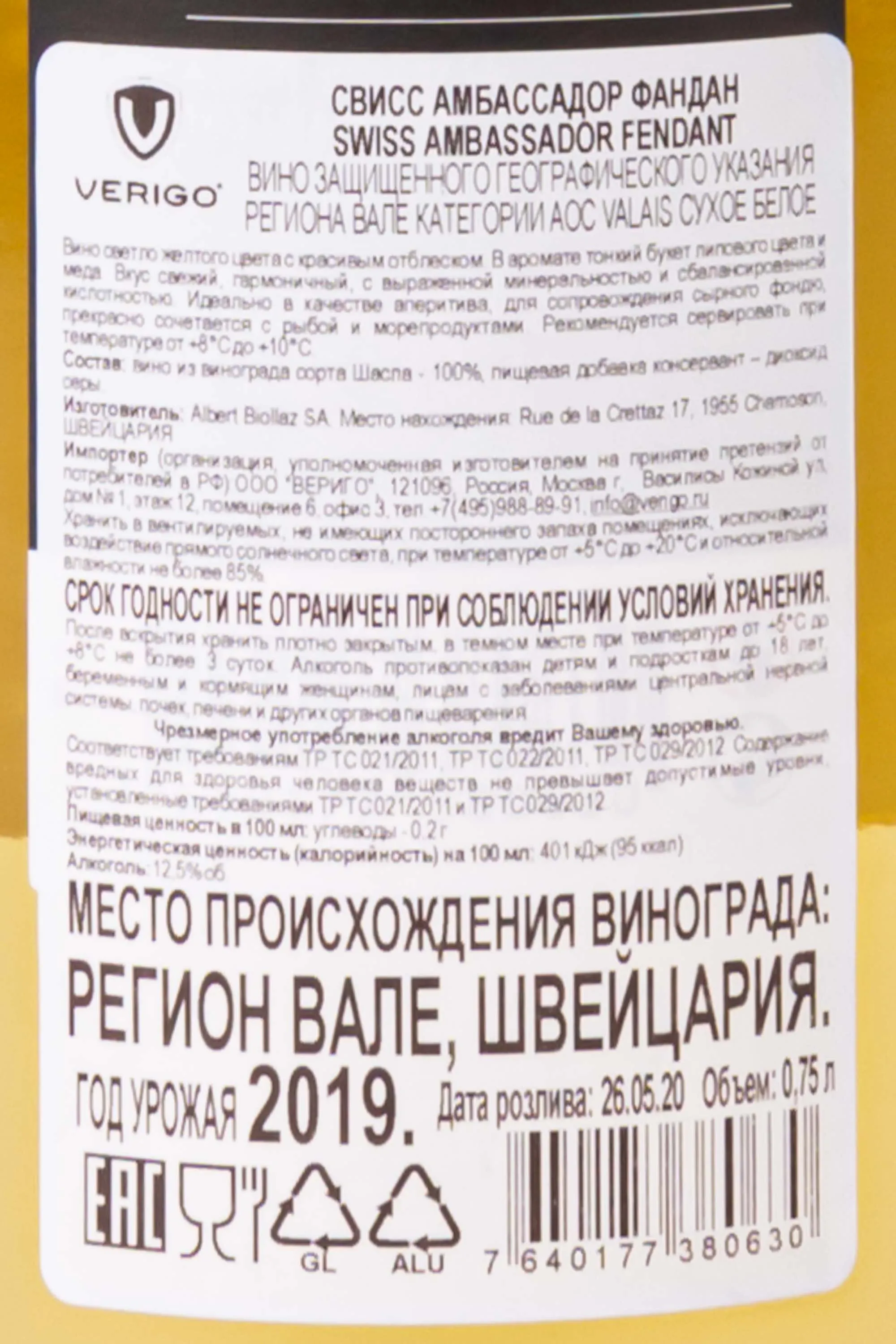 Swiss Ambassador Fendant 0.75 л купить - Швейцарское вино Свисс Амбассадор Фандан цена в магазинег. Москва, ул. Профсоюзная, д. 16/1010:00-22:00 Ежедневно+7 (495) 920-20-02info@cru.ru