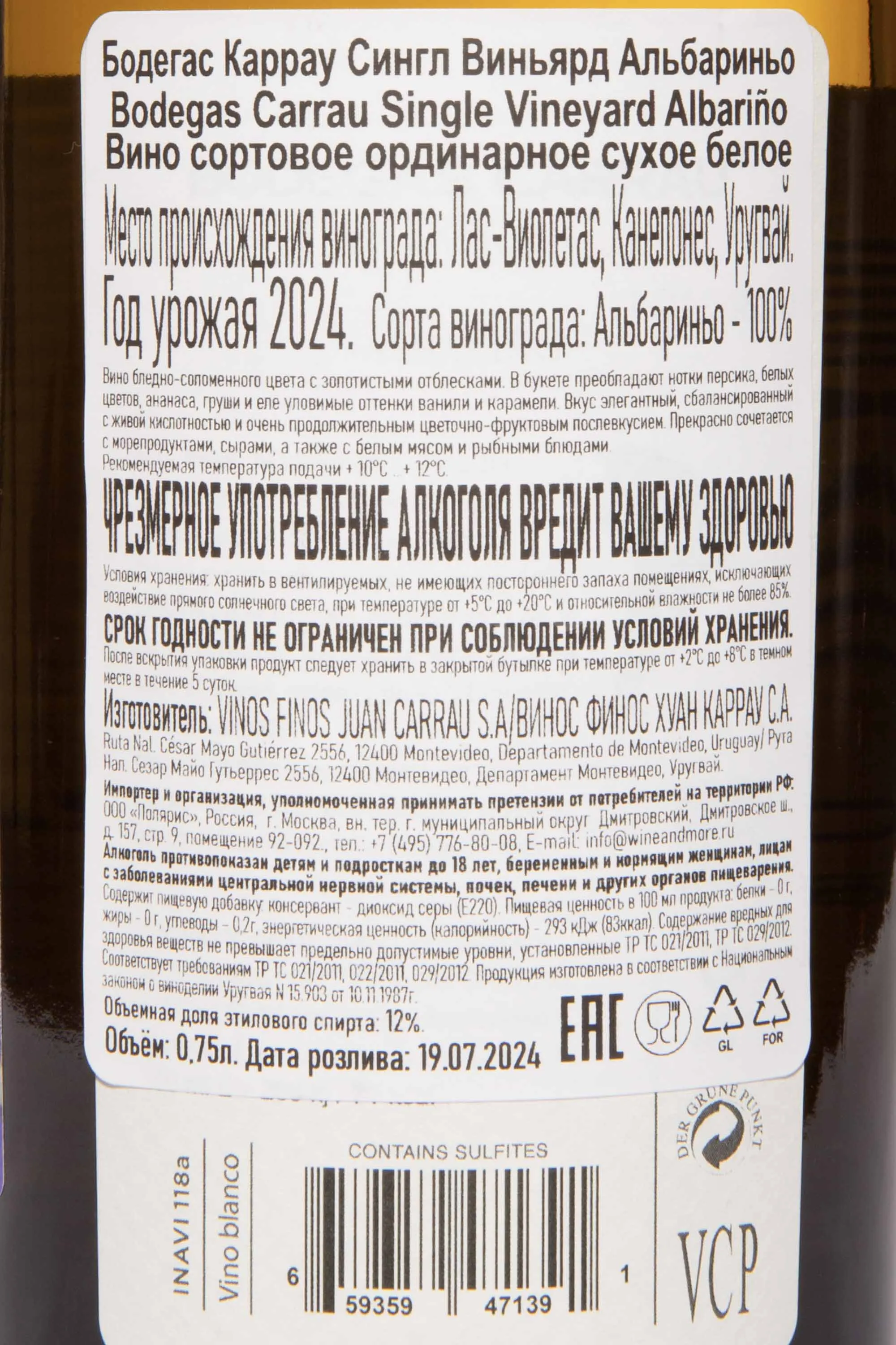 Bodegas Carrau Single Vineyard Albarino 0.75 л купить - Уругвайское вино Бодегас Каррау Сингл Виньярд Альбариньо цена в магазинег. Москва, ул. Профсоюзная, д. 16/1010:00-22:00 Ежедневно+7 (495) 920-20-02info@cru.ru