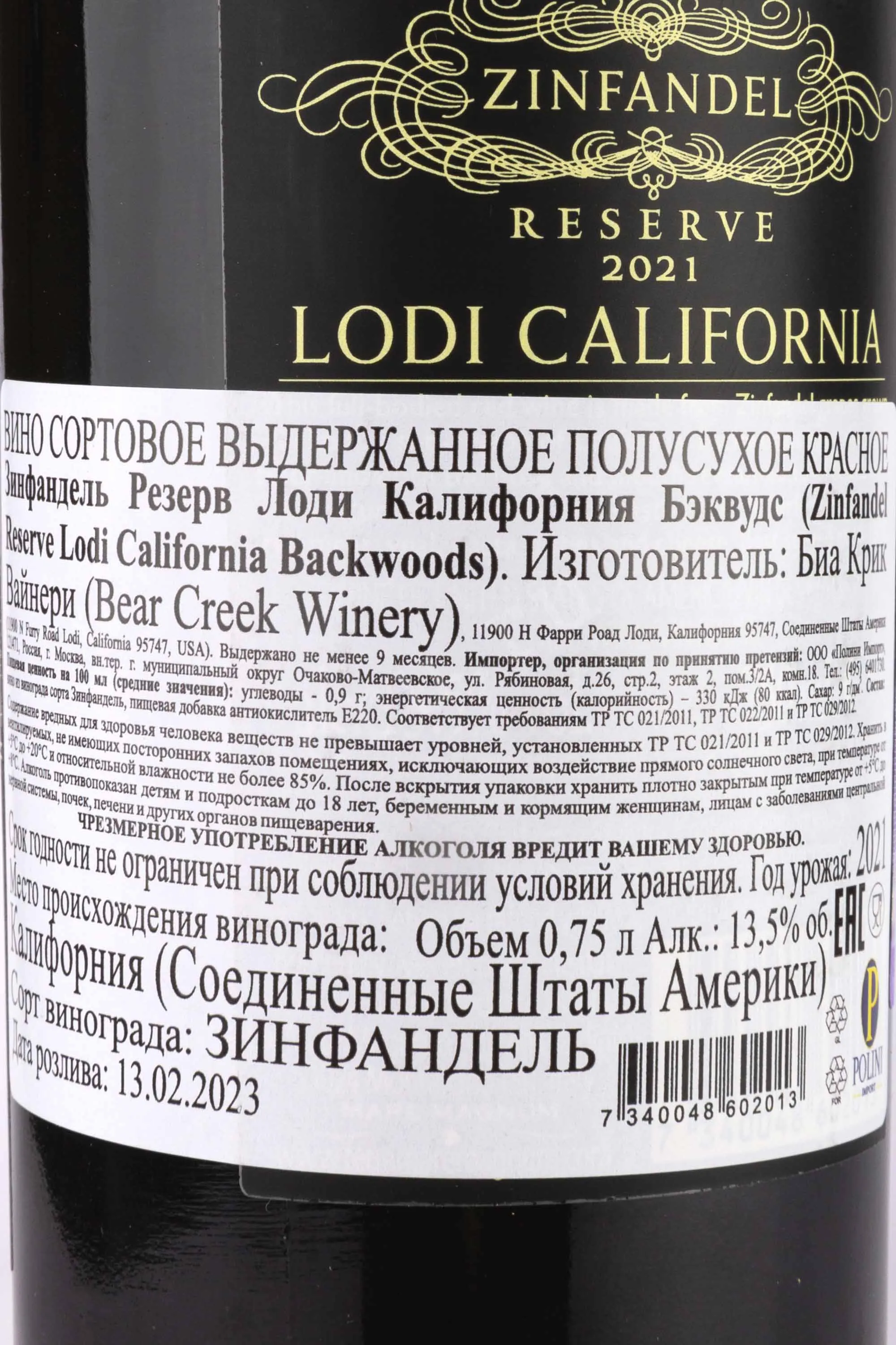 Backwoods Zinfandel Reserve 0.75 л купить - Американское вино Бэквудс Зинфандель Резерв цена в магазине
