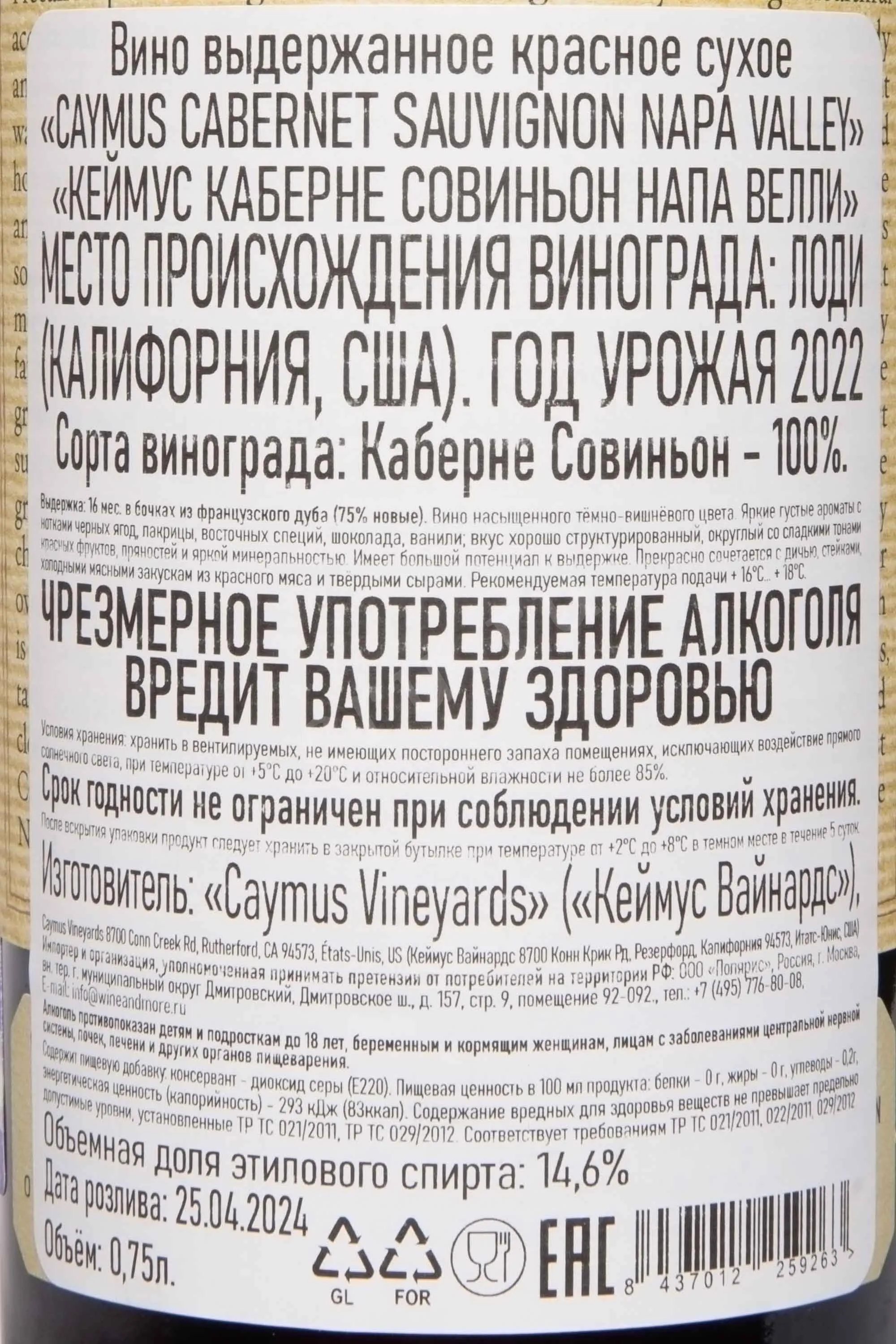 Caymus Cabernet Sauvignon Napa Valley2022 0.75 л купить - Американское вино Кеймус Каберне Совиньон Напа Велли цена в магазине