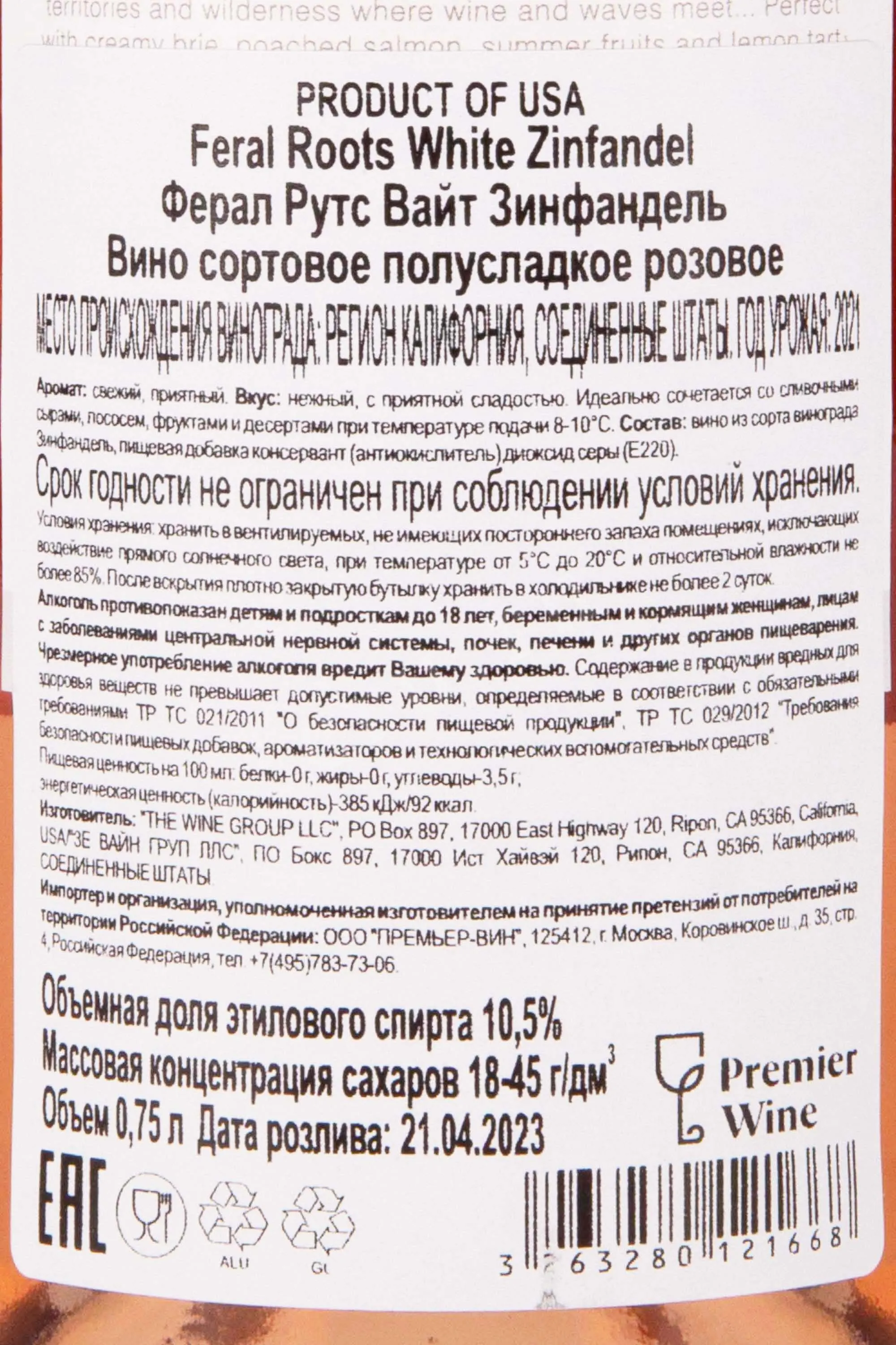 Feral Roots White Zinfandel 0.75 л купить - Американское вино Ферал Рутс Вайт Зинфандель цена в магазине