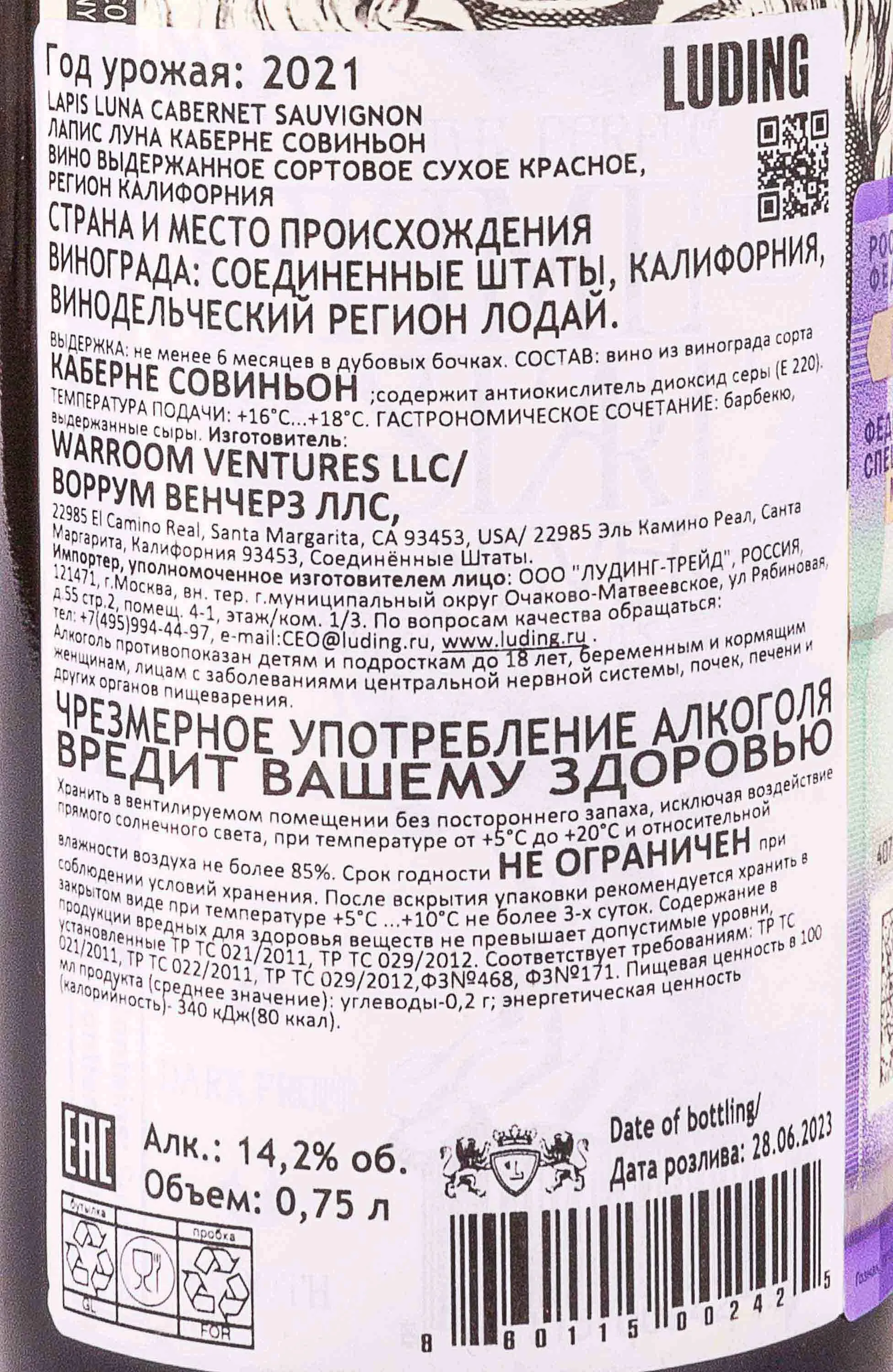 Lapis Luna Cabernet Sauvignon 0.75 л купить - Американское вино Лапис Луна Каберне Совиньон цена в магазинег. Москва, ул. Профсоюзная, д. 16/1010:00-22:00 Ежедневно+7 (495) 920-20-02info@cru.ru