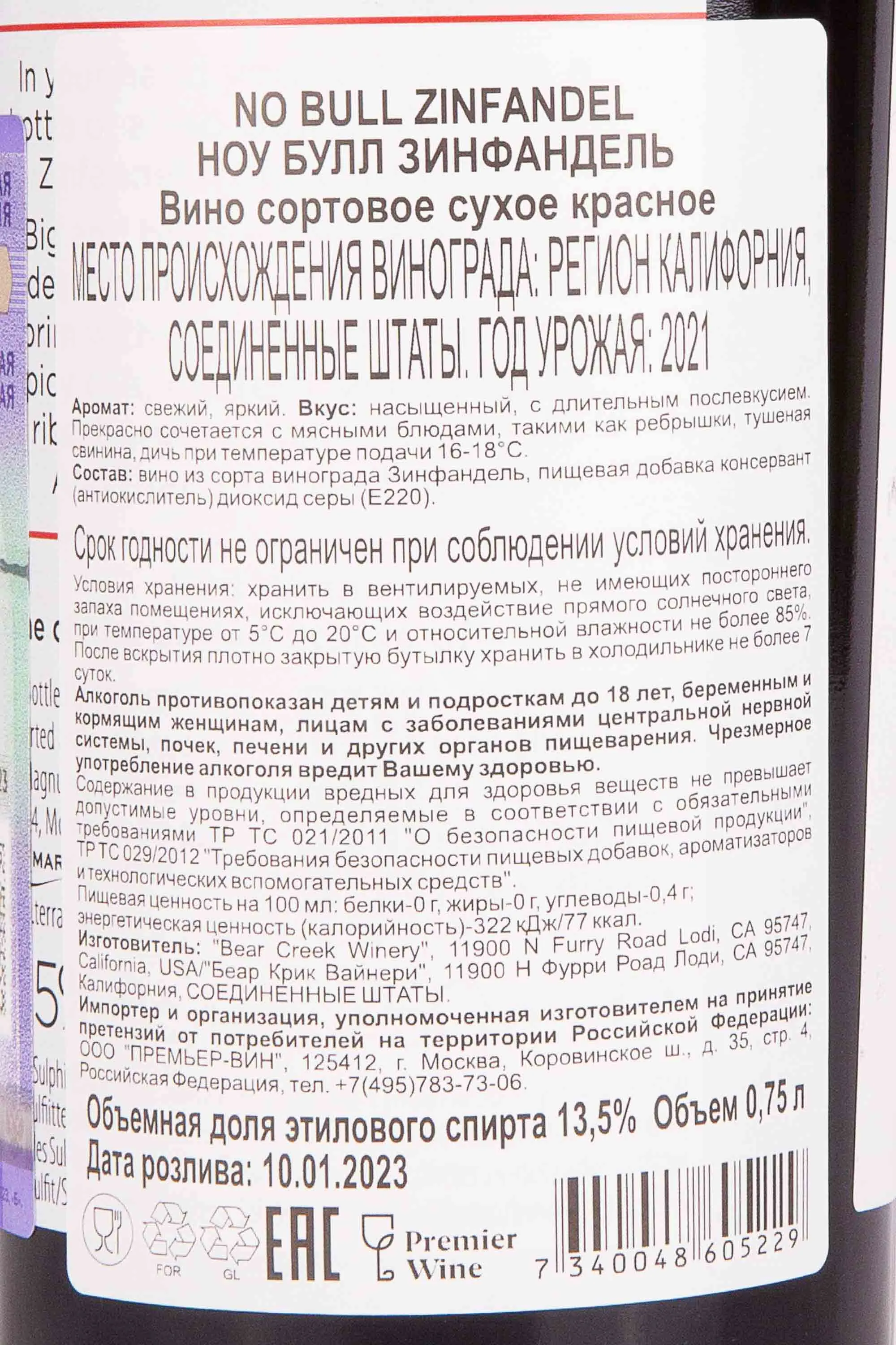 No Bull Zinfandel 0.75 л купить - Американское вино Ноу Булл Зинфандель цена в магазине