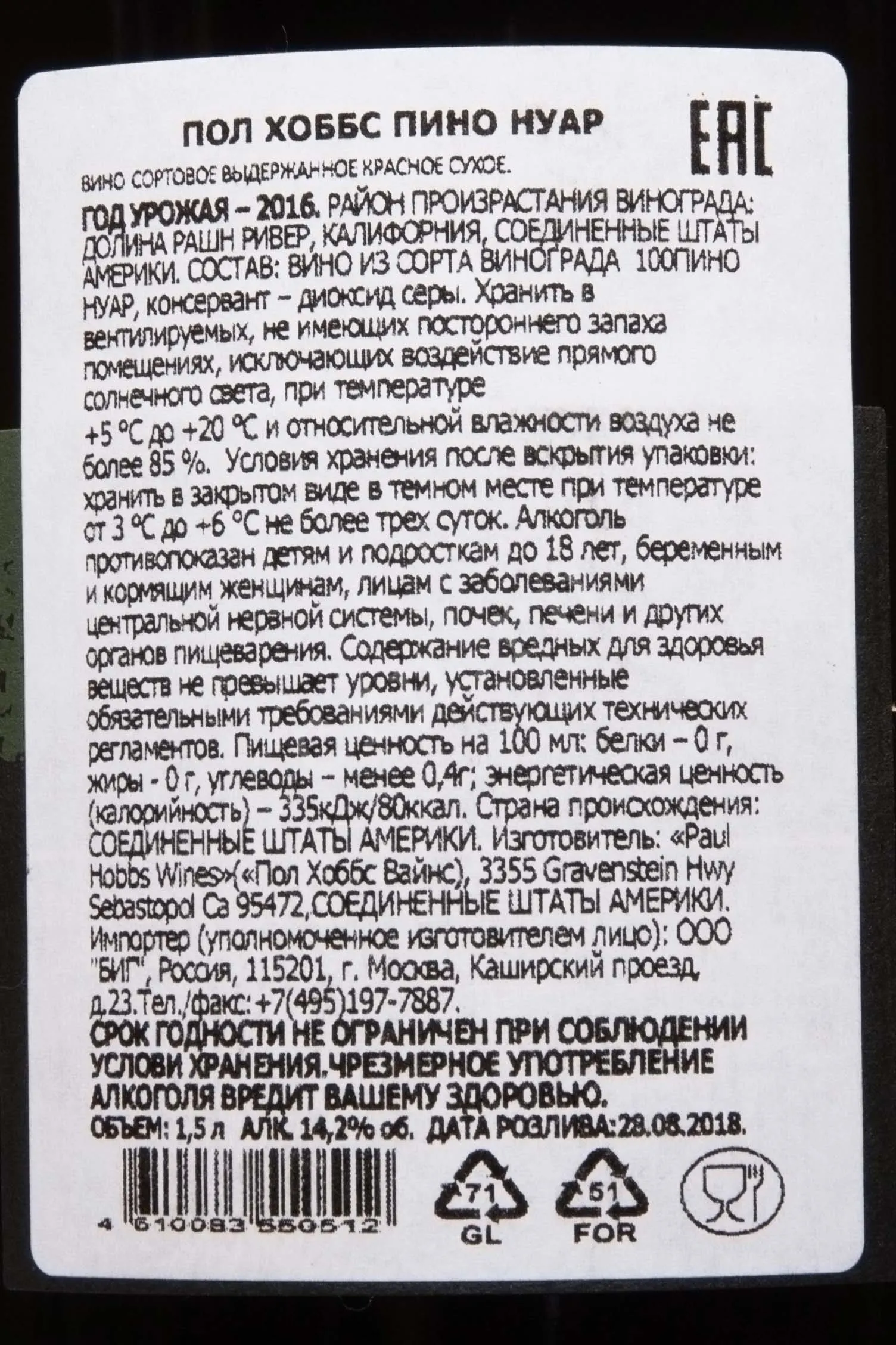 Пол Хоббс Рашн Ривер Пино Нуар 1.5