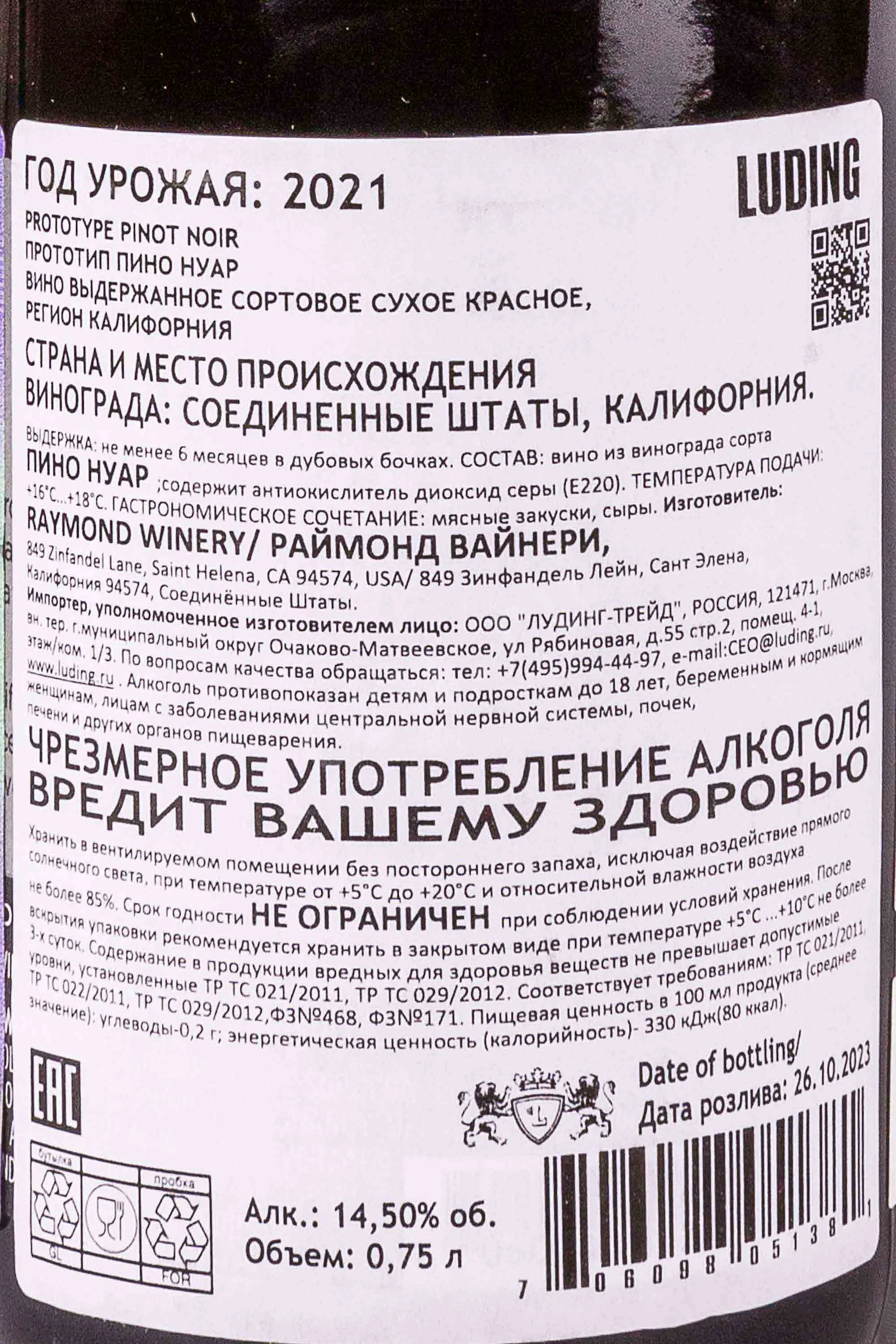 Prototype Pinot Noir 0.75 л купить - Американское вино Плототип Пино Нуар цена в магазине г. Москва, ул. Профсоюзная, д. 16/10 10:00-22:00 Ежедневно +7 (495) 920-20-02 info@cru.ru