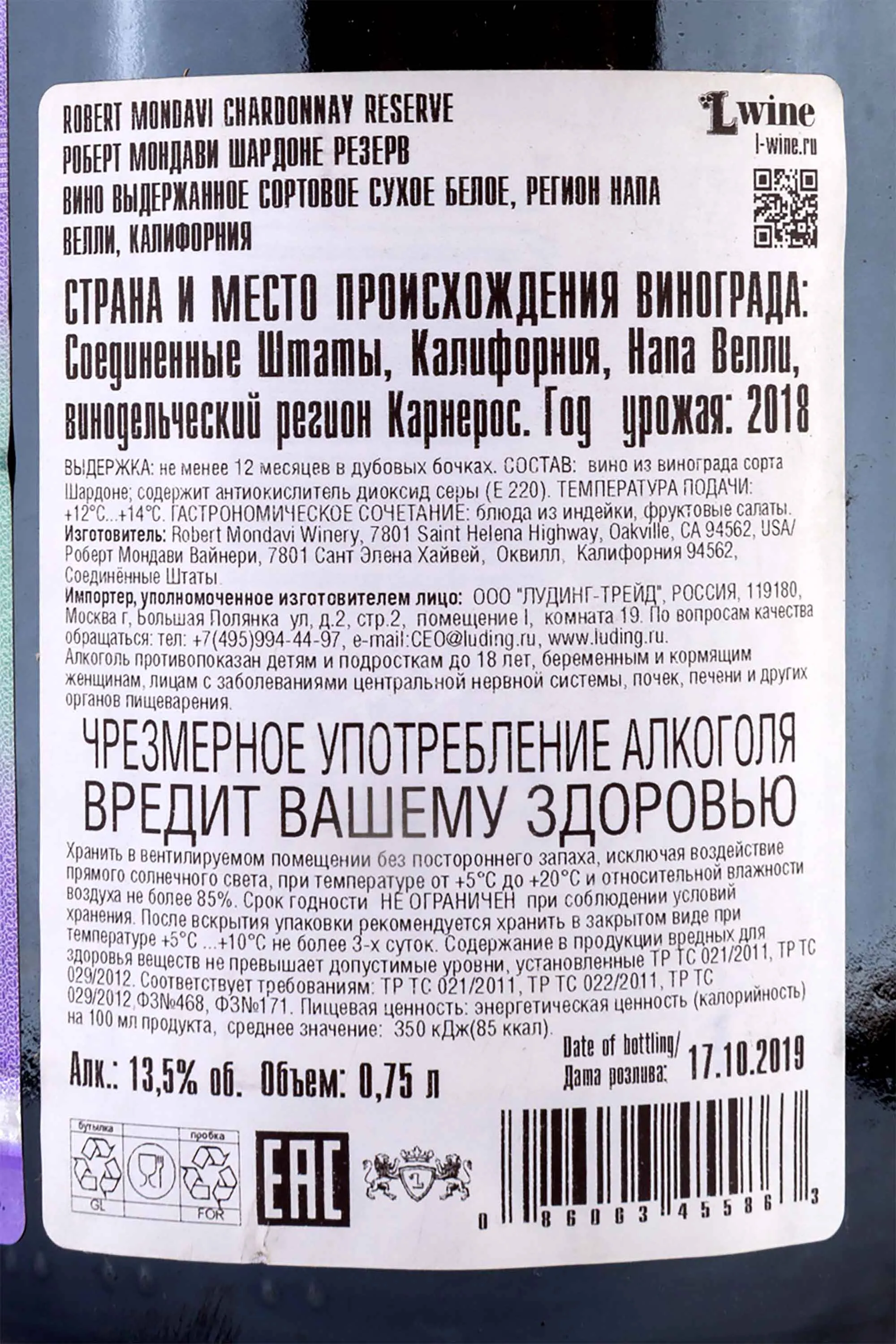 Robert Mondavi Reserve Chardonnay 0.75 л купить - Американское вино Роберт Мондави Резерв Шардоне цена в магазинег. Москва, ул. Профсоюзная, д. 16/1010:00-22:00 Ежедневно+7 (495) 920-20-02info@cru.ru