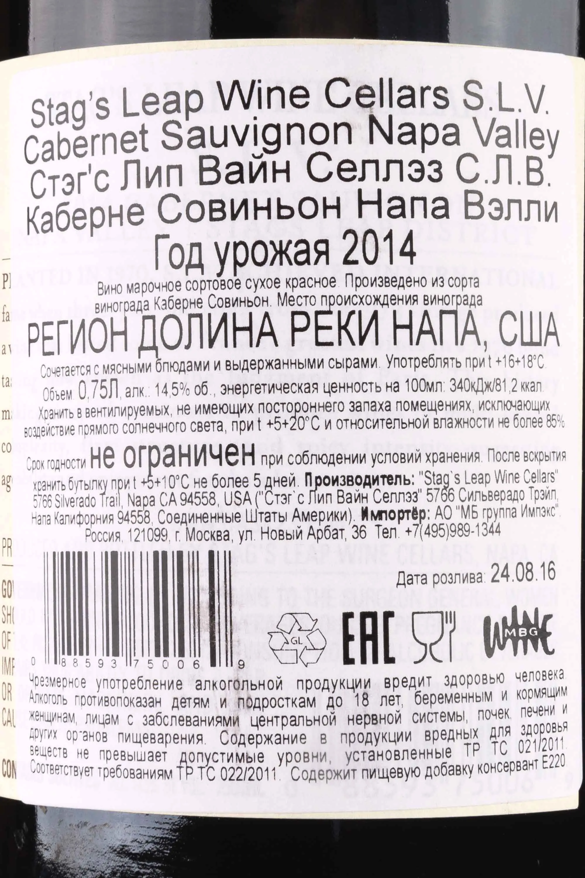 Stags Leap Wine Cellars S.L.V. Cabernet Sauvignon 0.75 л купить - Американское вино Стэгс Лип Вайн Селлэз С.Л.В. Каберне Совиньон 2014 г цена в магазине