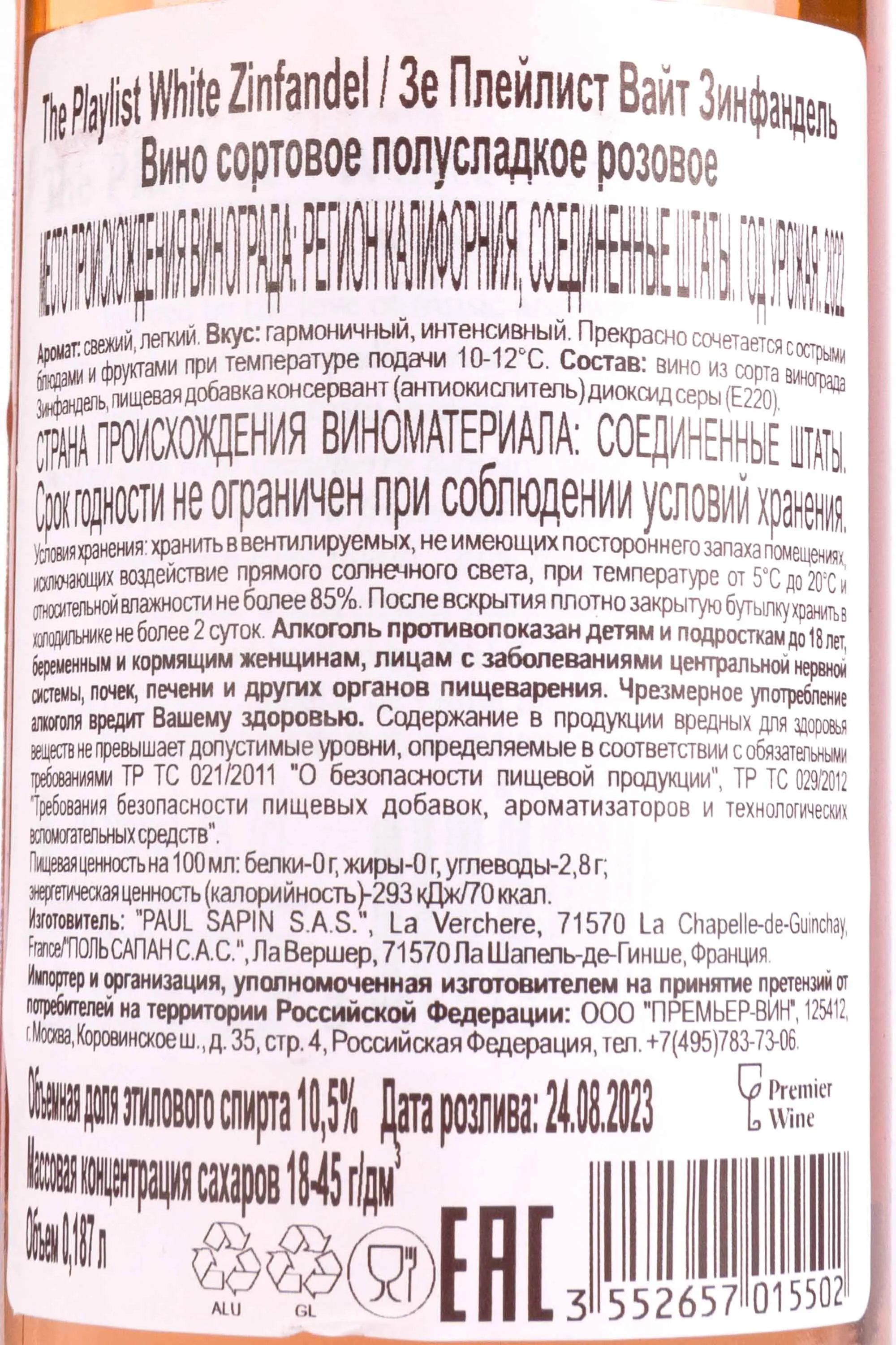 Зе Плейлист Вайт Зинфандель 0.187