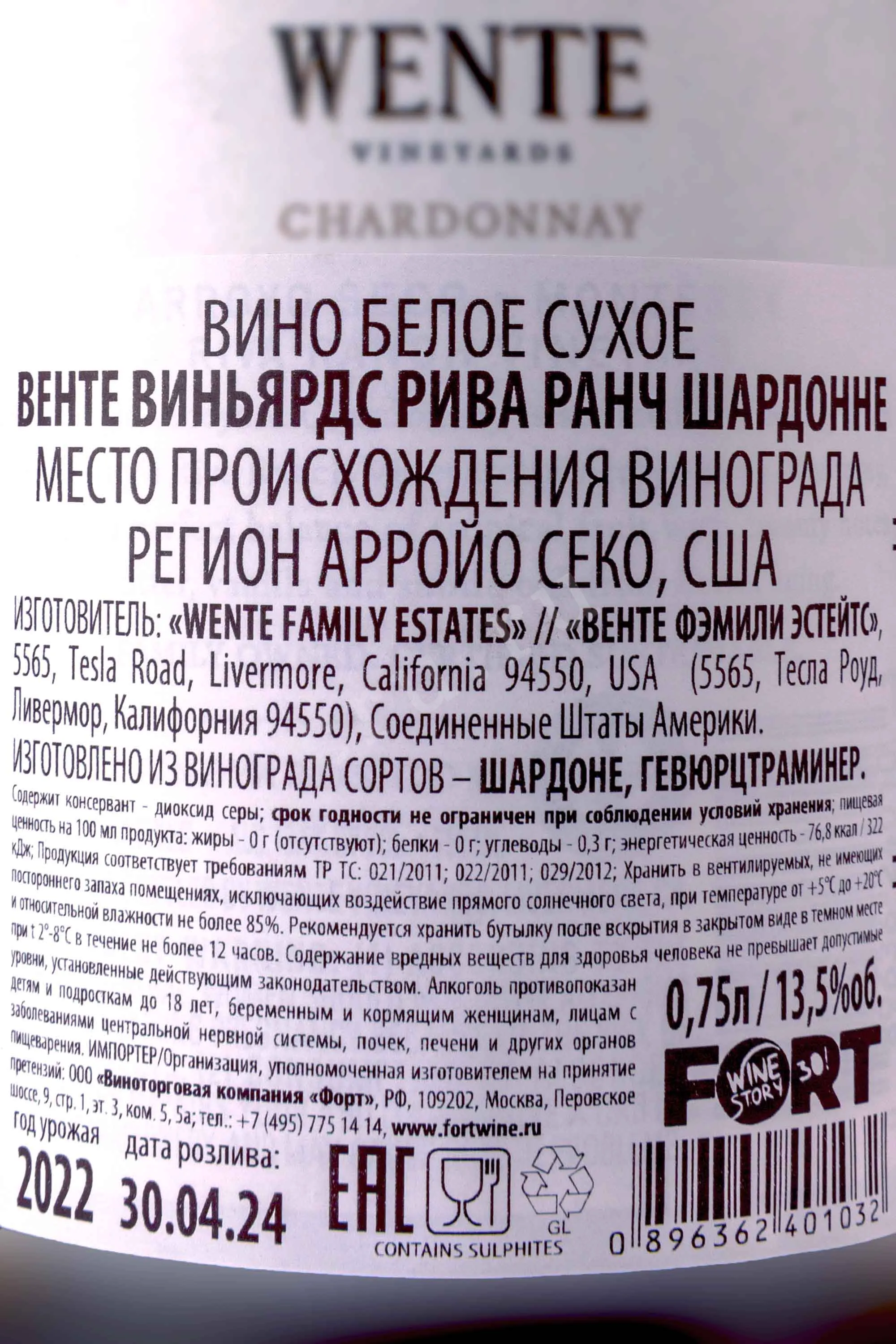 Wente Riva Ranch Chardonnay 0.75 л купить - Американское вино Венте Рива Ренч Шардоне цена в магазинег. Москва, ул. Профсоюзная, д. 16/1010:00-22:00 Ежедневно+7 (495) 920-20-02info@cru.ru