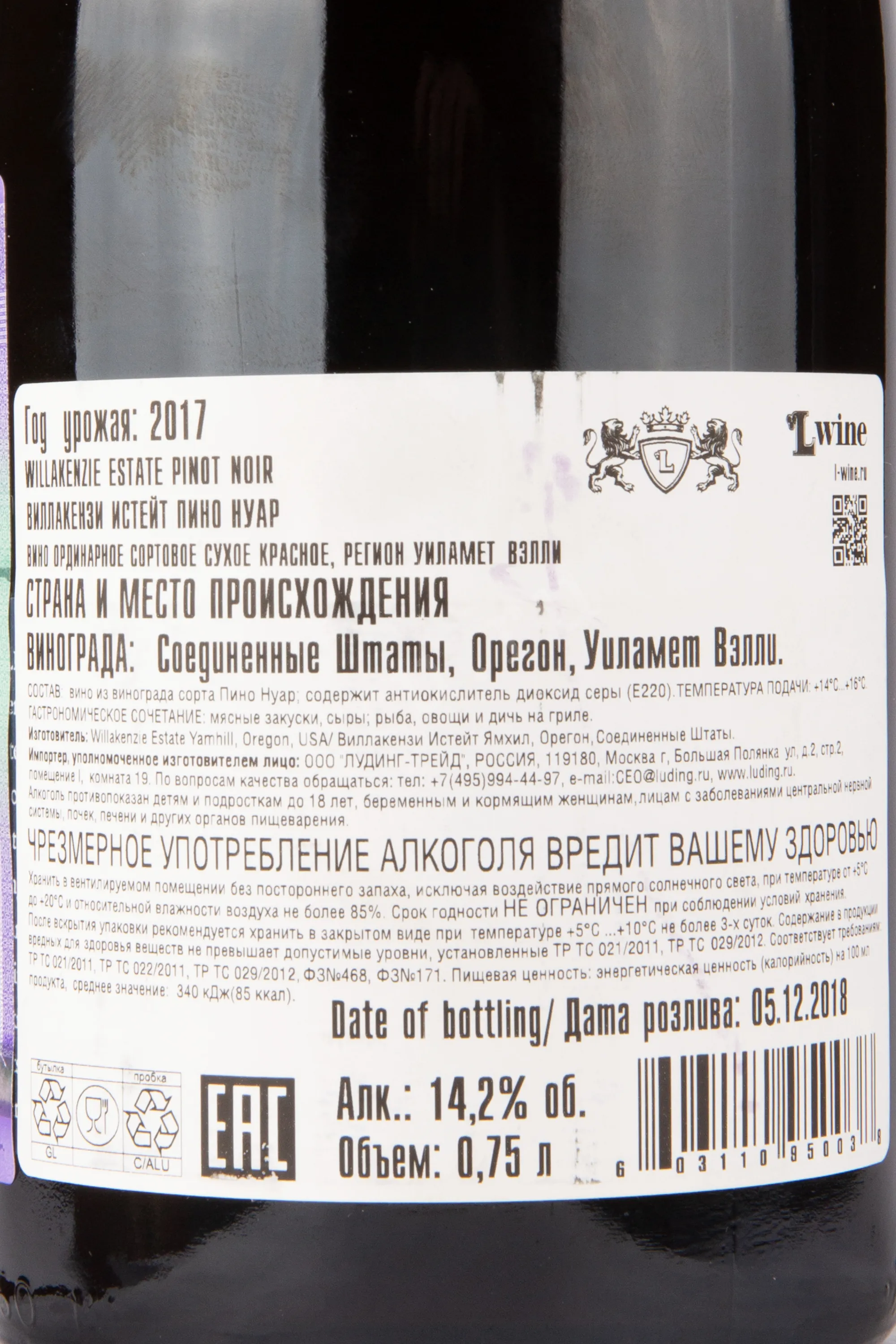 Willakenzie Estate Pinot Noir 2017 0.75 л купить - Американское вино Виллакензи Истейт Пино Нуар цена в магазине г. Москва, ул. Профсоюзная, д. 16/10 10:00-22:00 Ежедневно +7 (495) 920-20-02 info@cru.ru